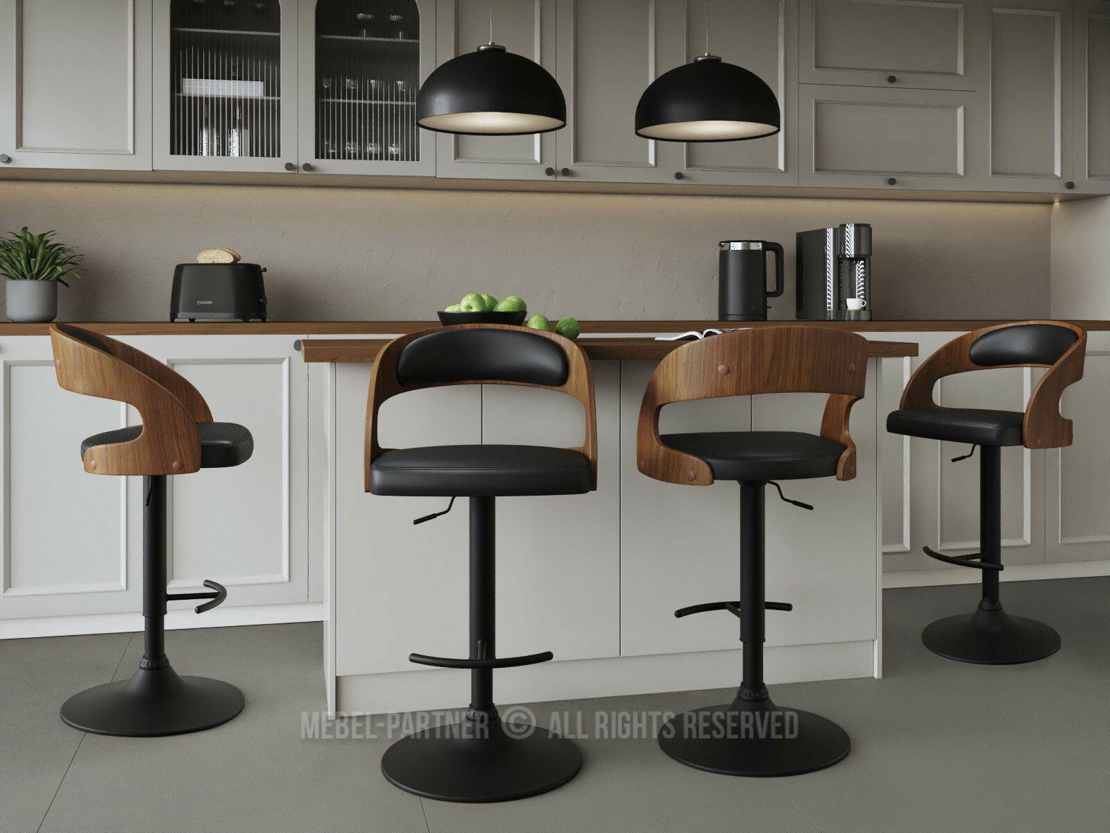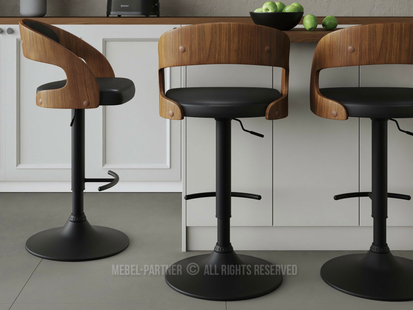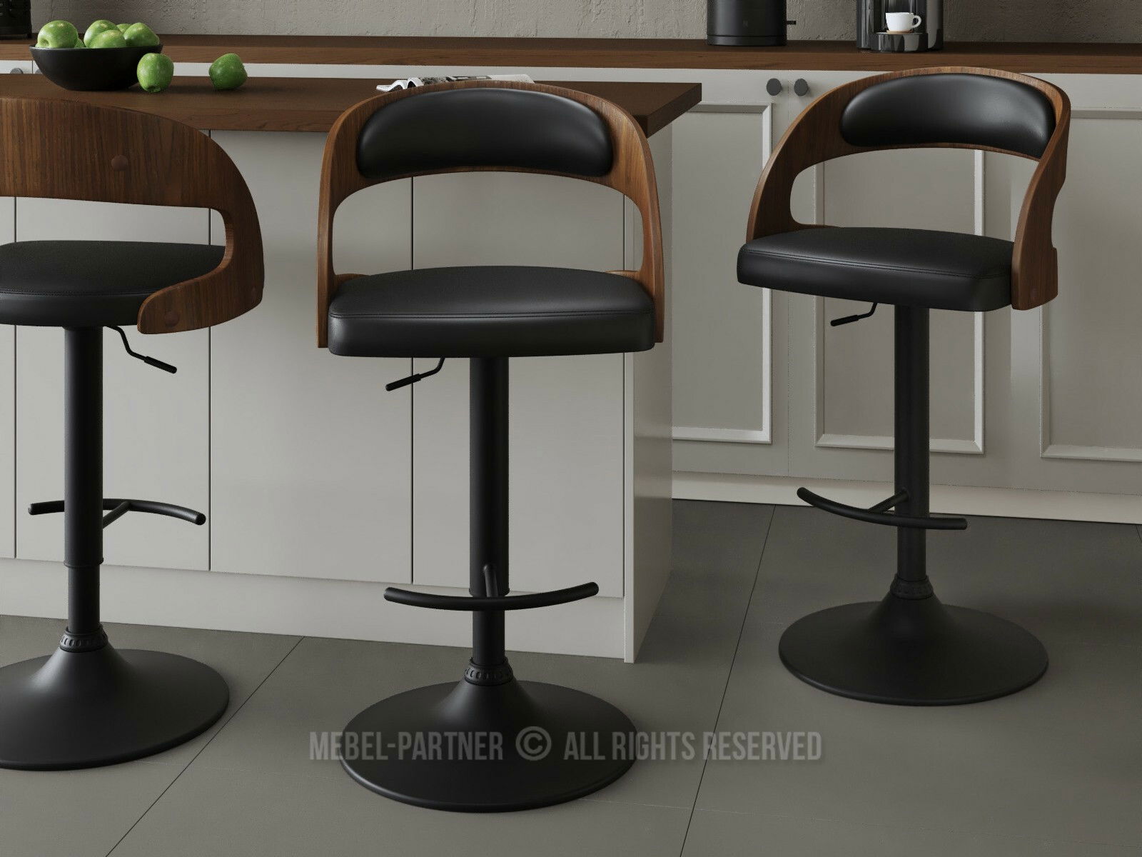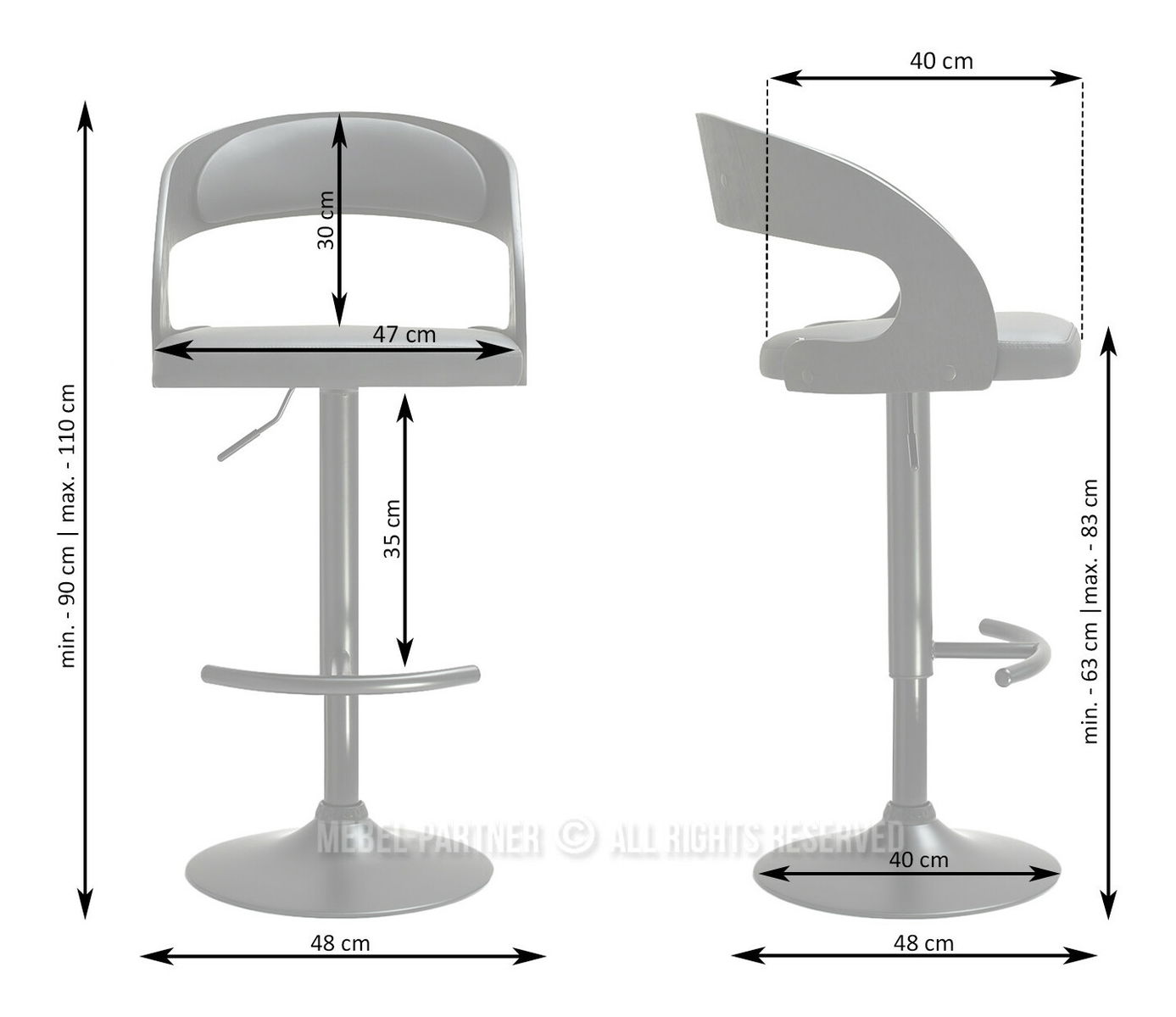 okretno sjedište, naslon - da, baza - središnja noga, nasloni za ruke - ne, podesiva visina