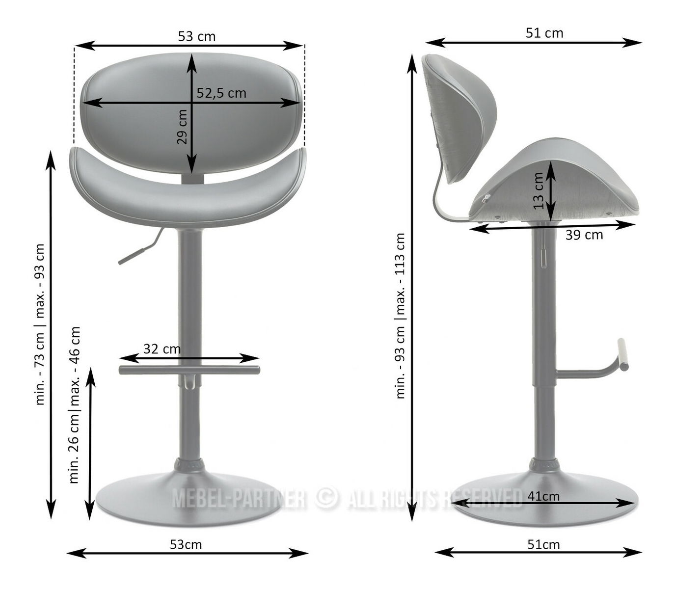 naslon - da, nasloni za ruke - ne, okretno sjedište, podesiva visina, baza - središnja noga