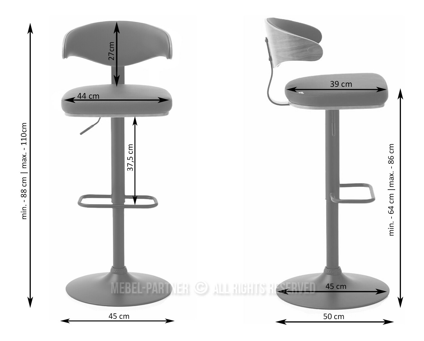 naslon - da, nasloni za ruke - ne, okretno sjedište, podesiva visina, baza - središnja noga