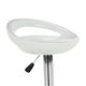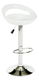 Moderna okretna barska stolica s mogućnošću podešavanja visine. Postolje je kromirano, a sjedište je bijele boje.