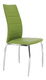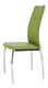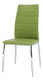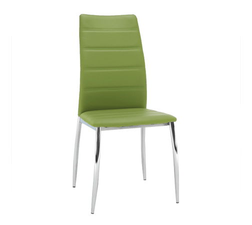 Moderna blagovaonska stolica sa zaobljenim naslonom. Sjedište i naslon su presvučeni zelenom eko-kožom. Visina sjedišta je 44 cm.