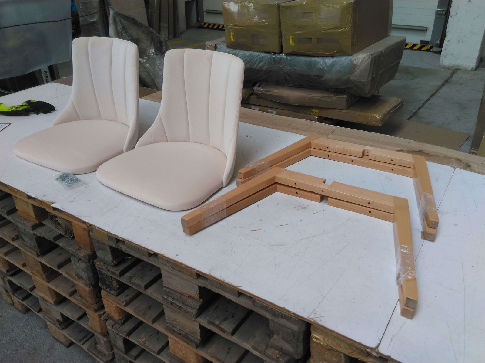 okvir: bukva, sjedište: šperploča 18 mm + pjena 3 cm 25/44 + baršunasta tkanina, naslon za leđa: šperploča 1,2 cm, boja: vodeni bajc, zaštitni sloj: 2x vodeni lak