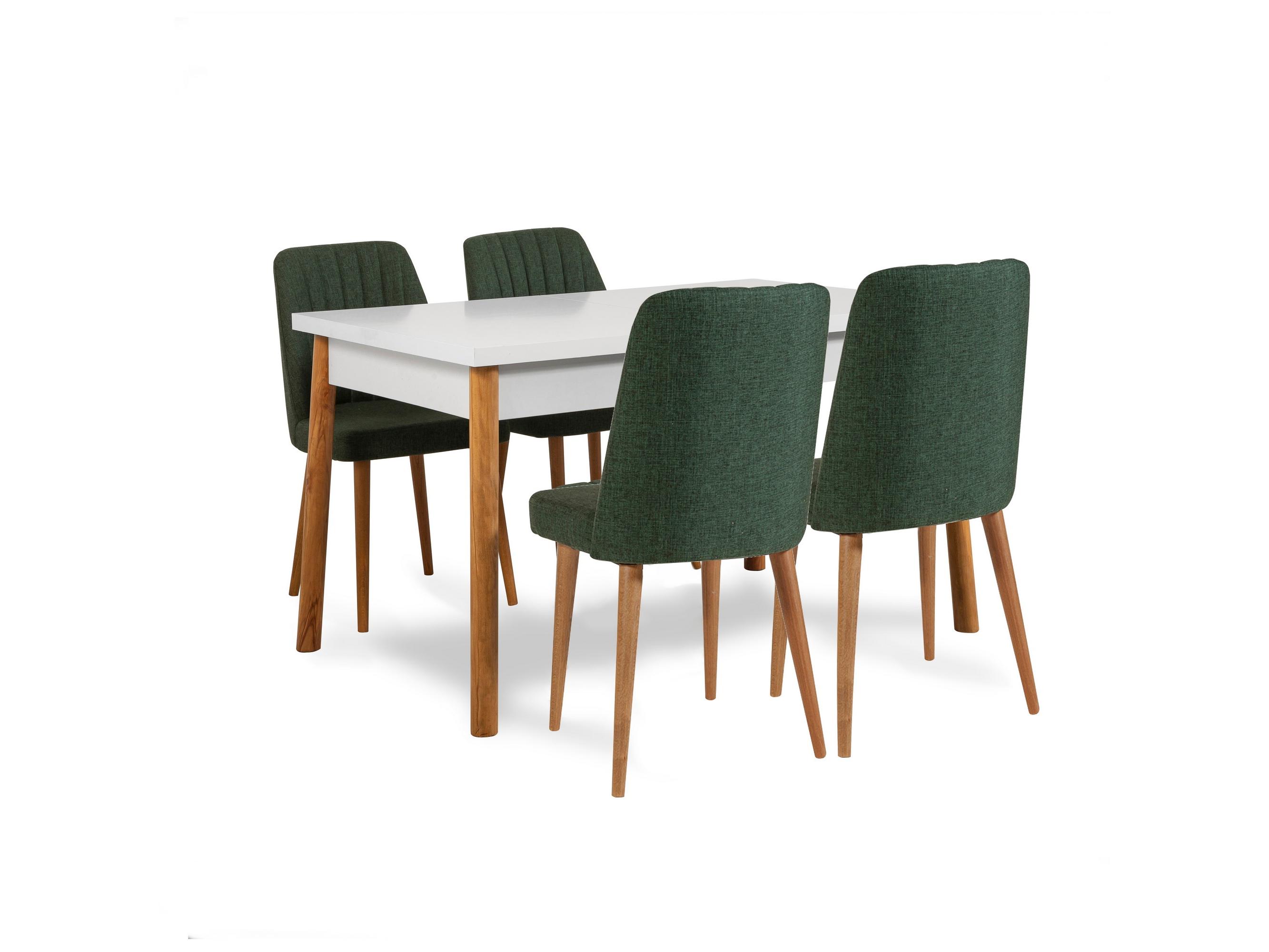 Blagovaonski set Elmer sastoji se od stola na razvlačenje i šest stolica. Sjedište i nasloni su tapecirani.