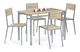 PrikazBlagovaonski set 1+4, u boji 3D hrast sonoma, srebrni lak. Konstrukcija je izrađena od metala, a ploče stola, sjedala i naslona od MDF-a.