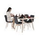 Stol za blagovanje donijet će moderan stil u vašu blagovaonicu. Jednostavno minimalistički i stabilan. Odabrani materijali i glatka površina olakšavaju održavanje. Komplet se sastoji od stola i 4 stolice.