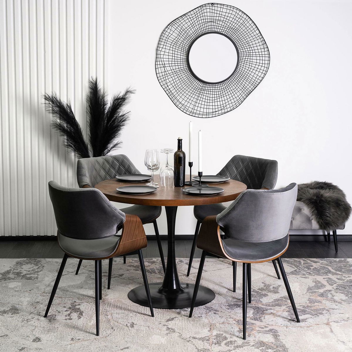 Blagovaonski set Lateral (orah + crna + siva) (za 4 osobe)