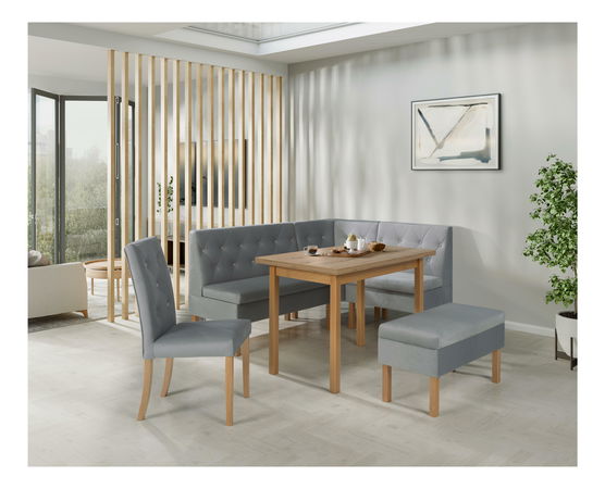 Kutna klupa 130x170 cm, blagovaonski stol 110x70x78 cm, stolica 45x40x100 cm, klupa 80x40x48 cm