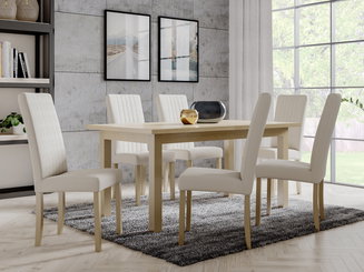 3.Materijal: Blagovaonski setovi često su kombinacija dva materijala. Najčešće se susrećemo s drvom i metalom ili pak drvom i tapeciranjem. Kod nas možete birati između svijetlih nijansi, kao i onih tamnih. Ovisi, naravno, o vašim preferencijama. Posebno su popularni bijeli blagovaonski setovi ili setovi u boji hrast sonoma.