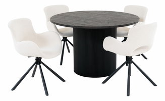 3.Materijal: Blagovaonski setovi često su kombinacija dva materijala. Najčešće se susrećemo s drvom i metalom ili pak drvom i tapeciranjem. Kod nas možete birati između svijetlih nijansi, kao i onih tamnih. Ovisi, naravno, o vašim preferencijama. Posebno su popularni bijeli blagovaonski setovi ili setovi u boji hrast sonoma.