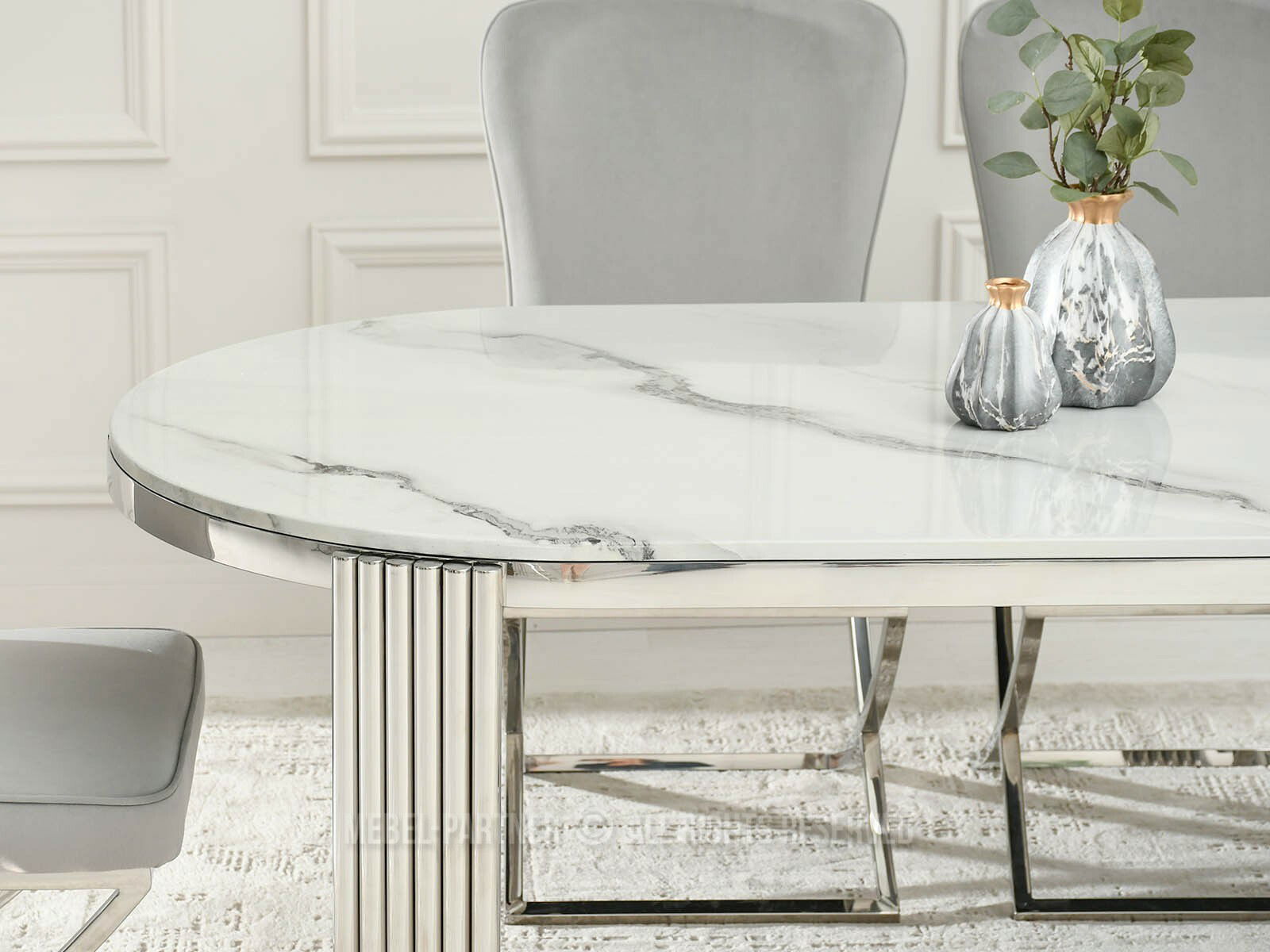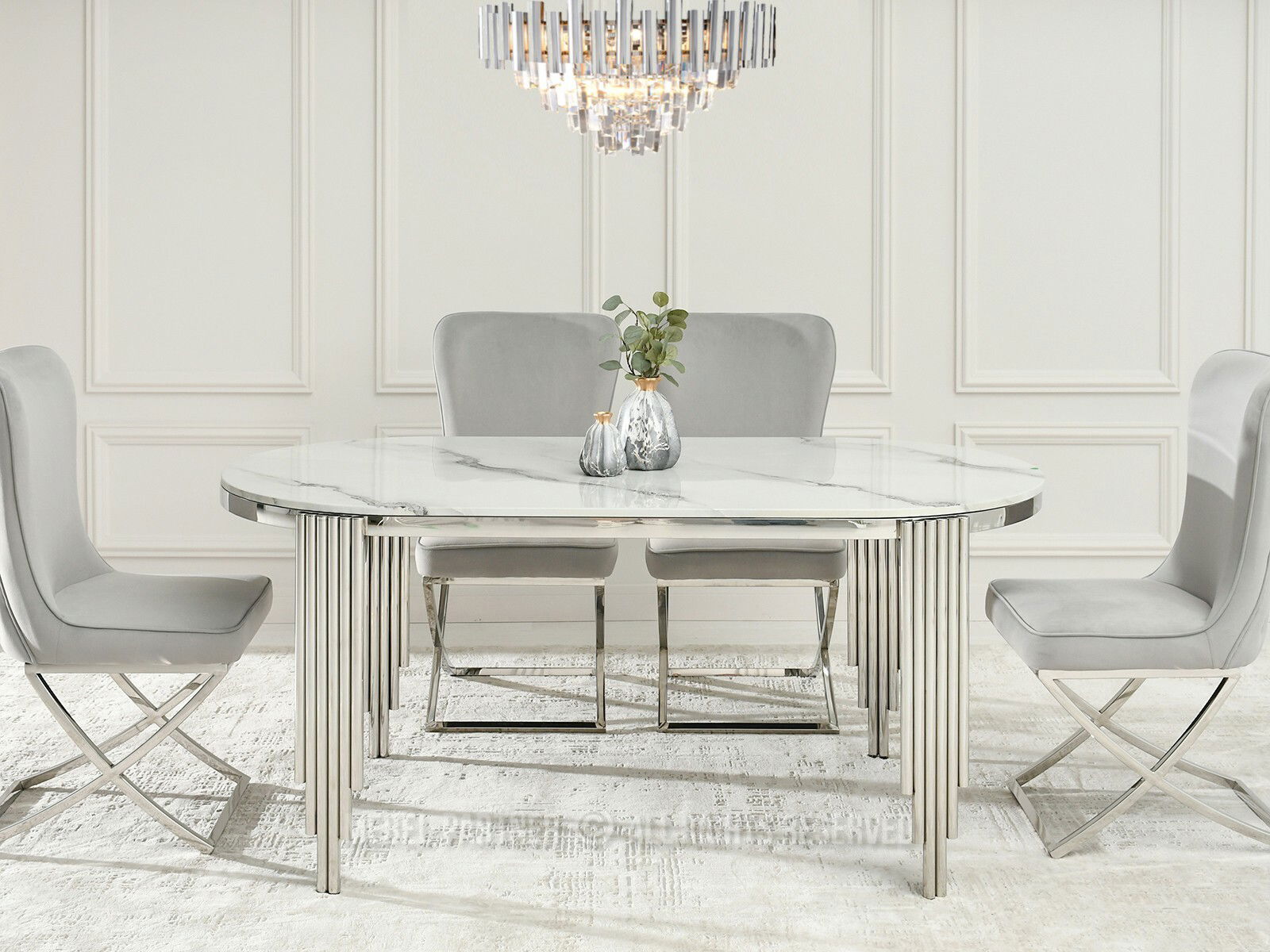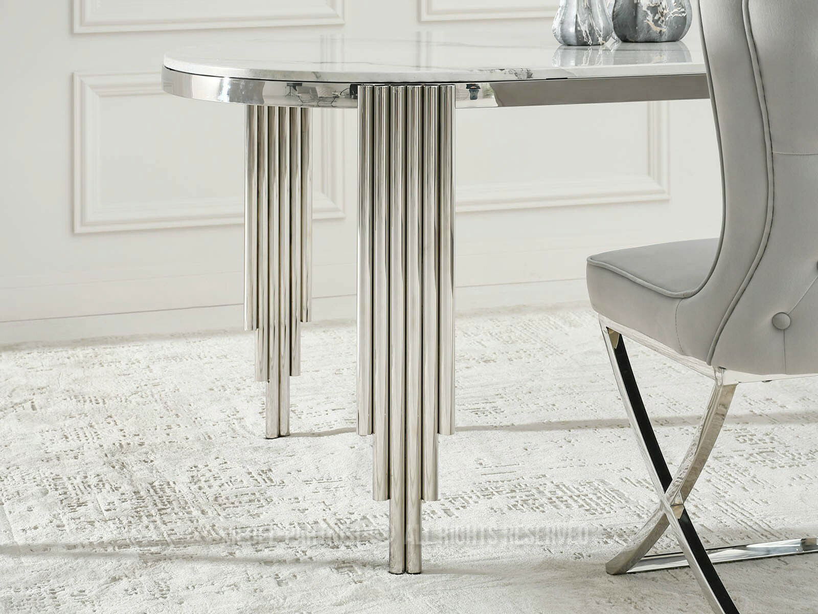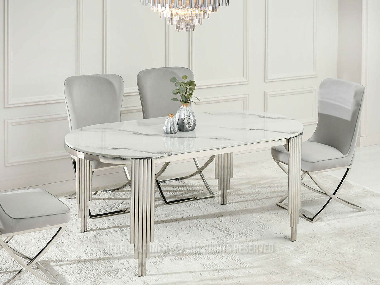 Blagovaonski stol Antiga (bijeli mramor + krom)