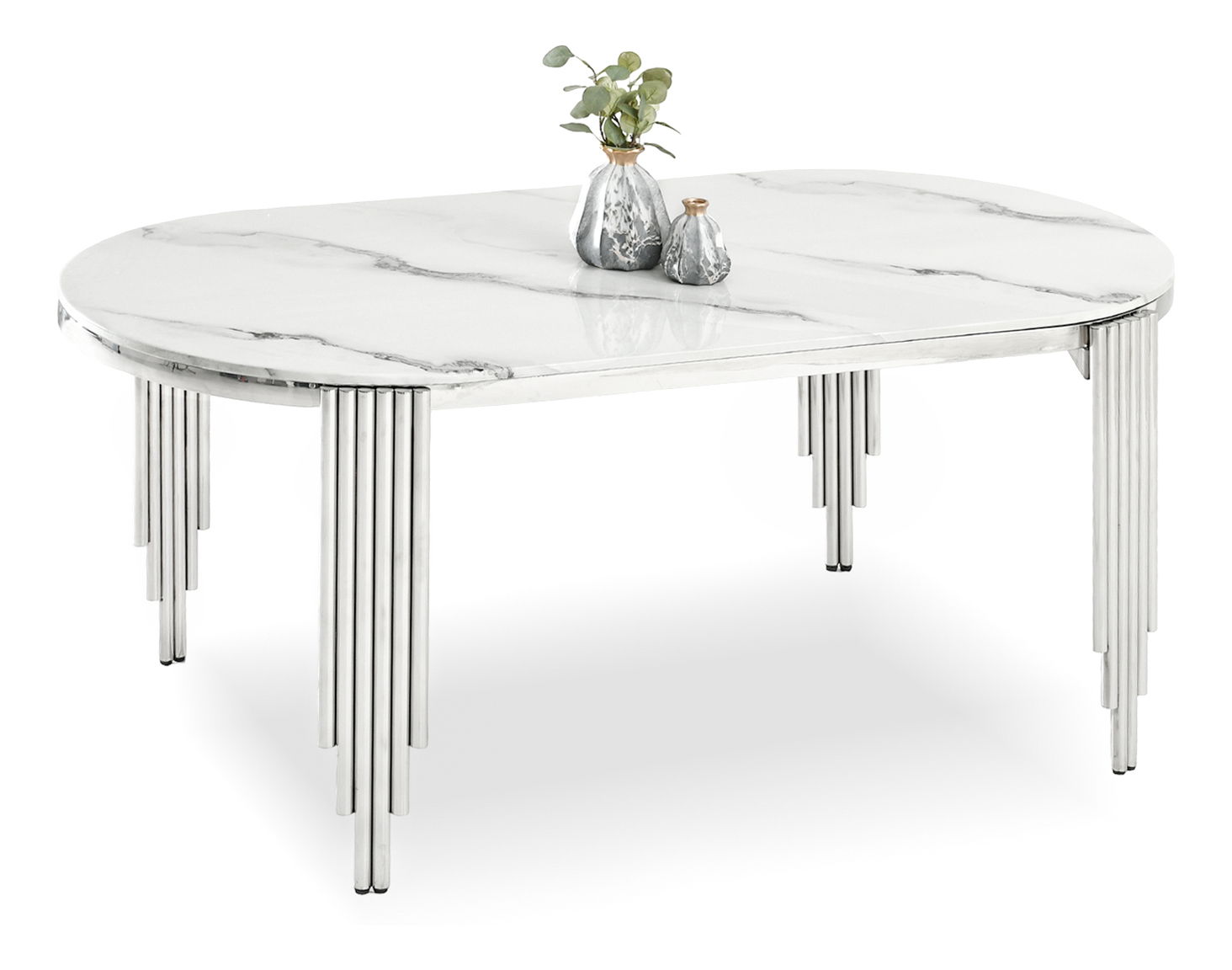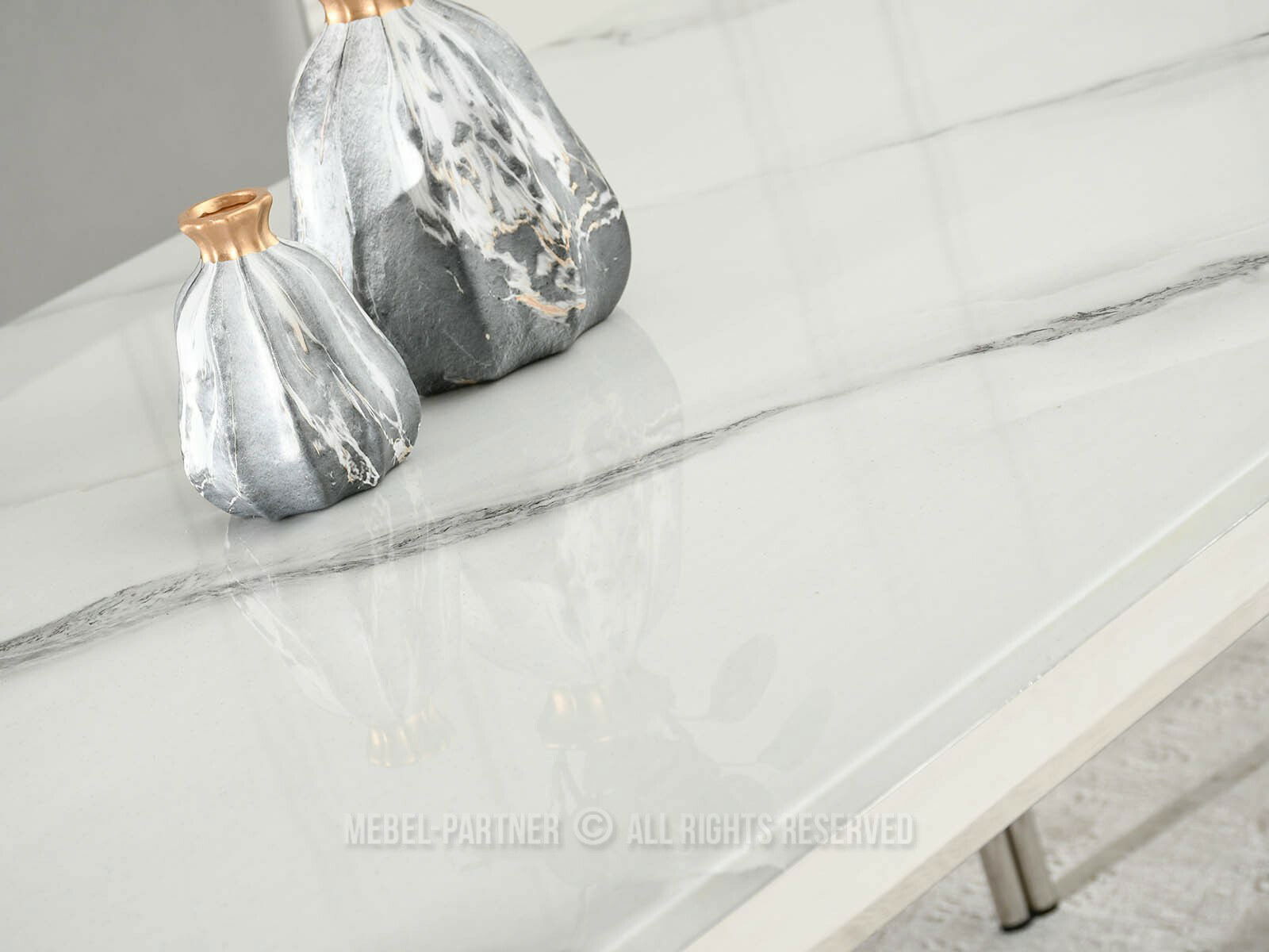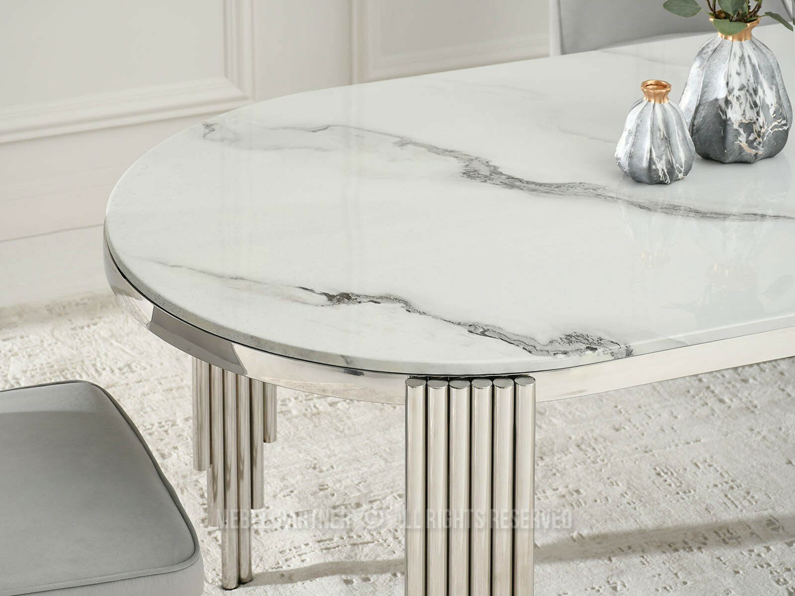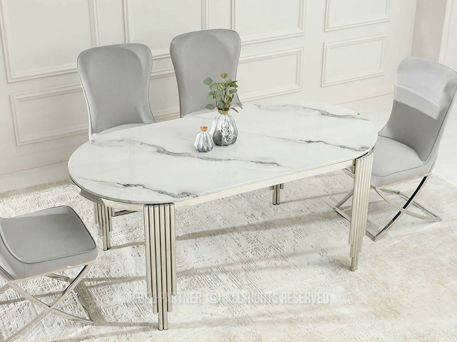 Blagovaonski stol Antiga (bijeli mramor + krom)