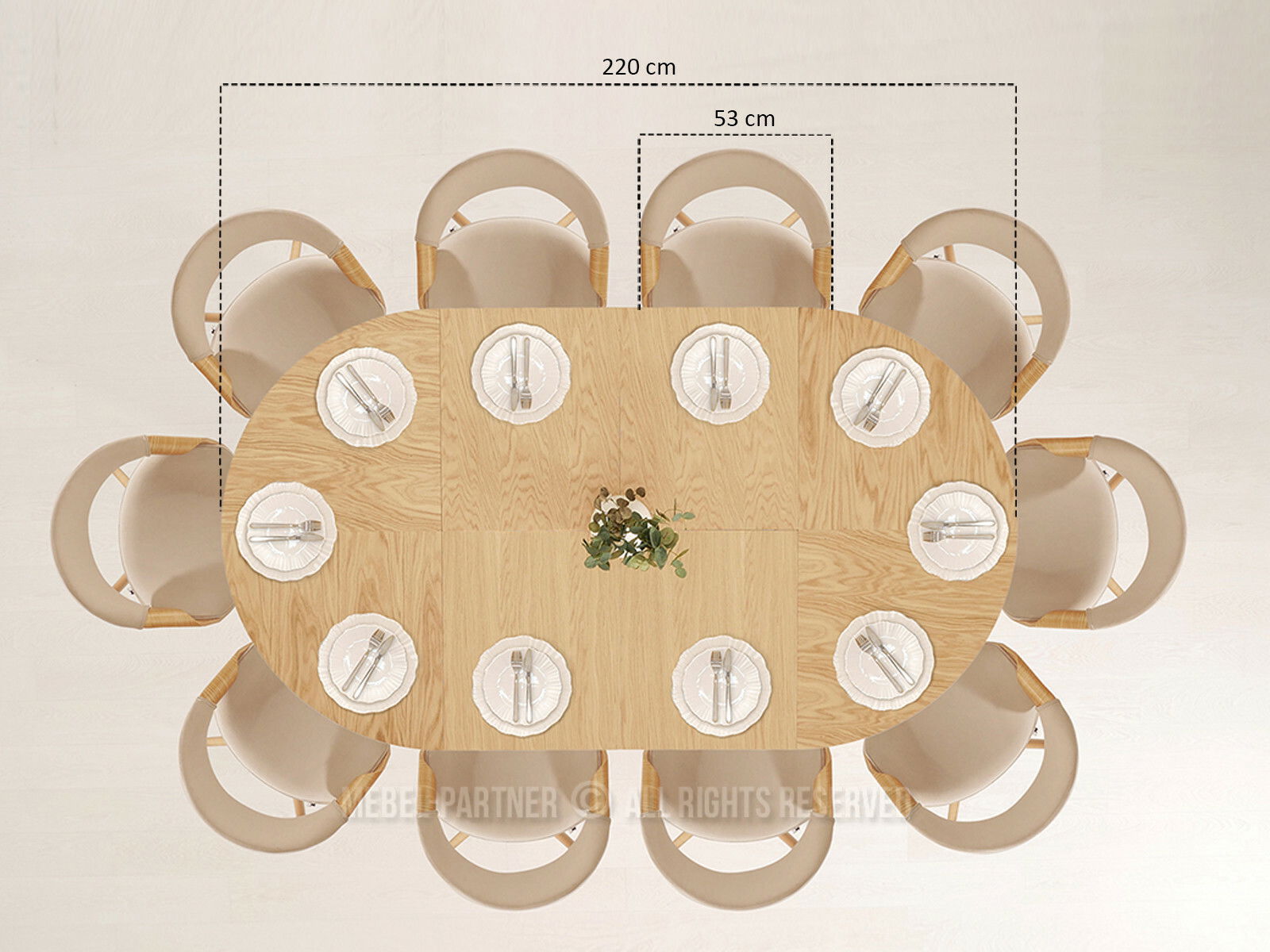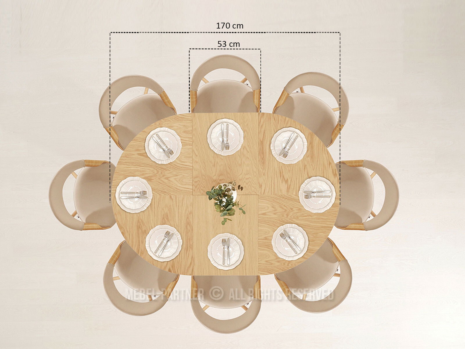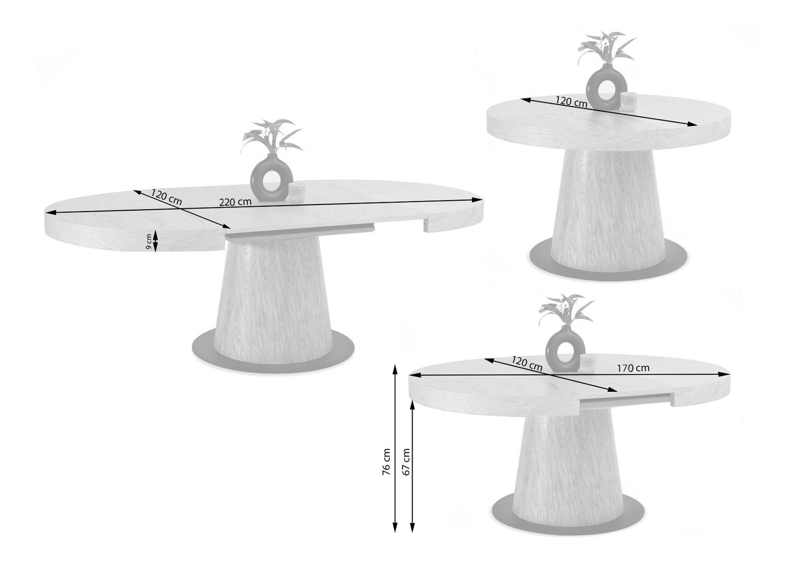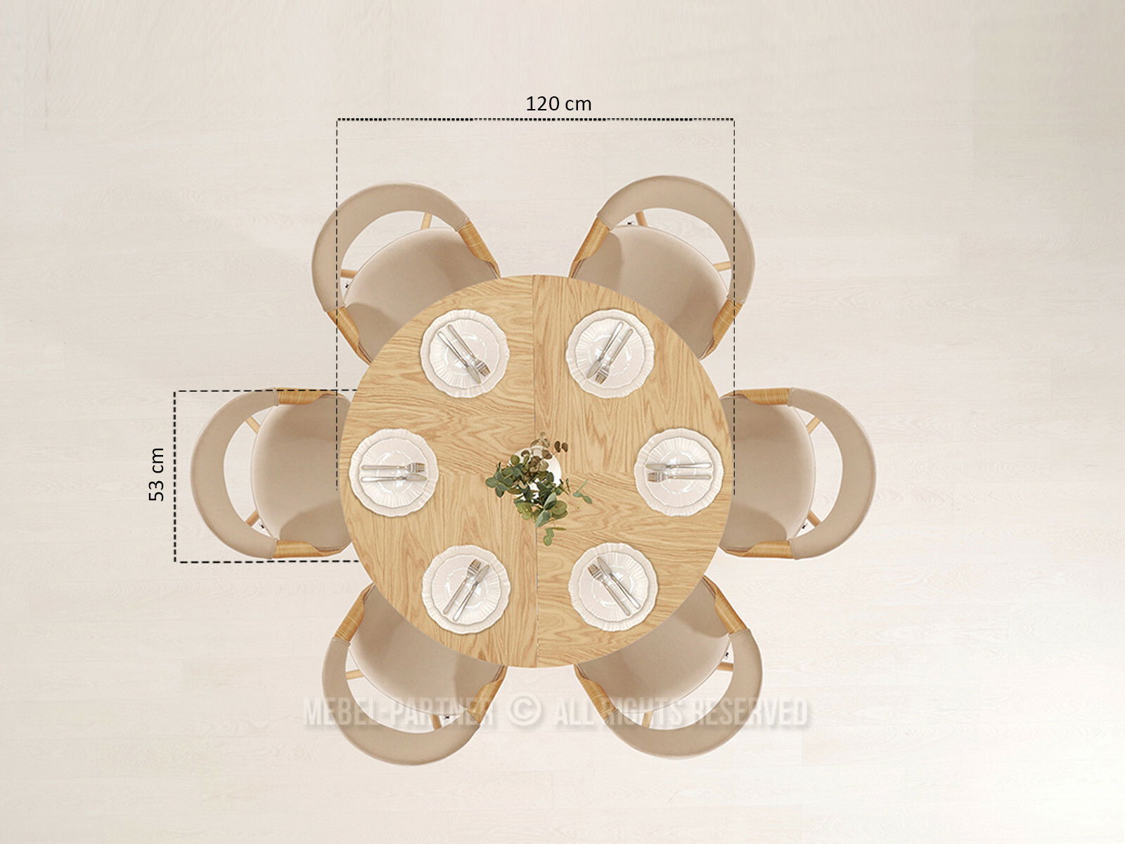 okrugla ploča stola, za 6 osoba, na razvlačenje, središnja baza