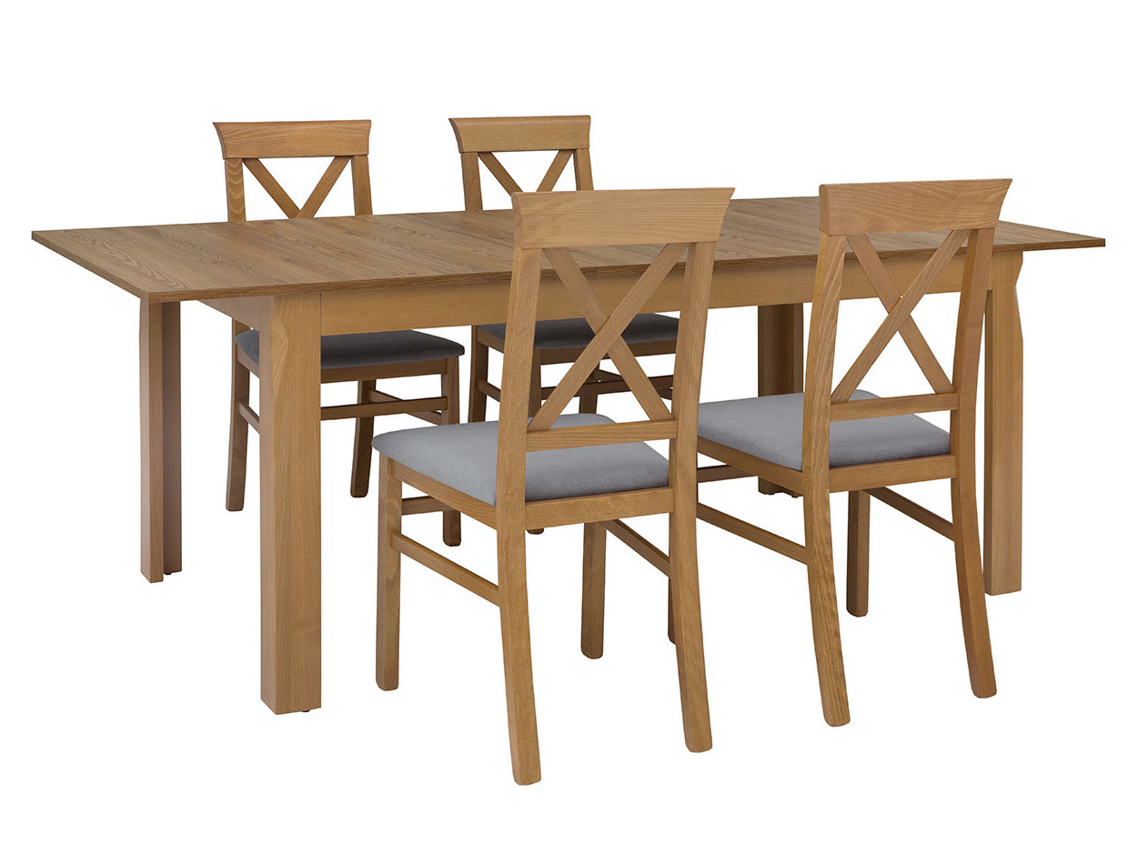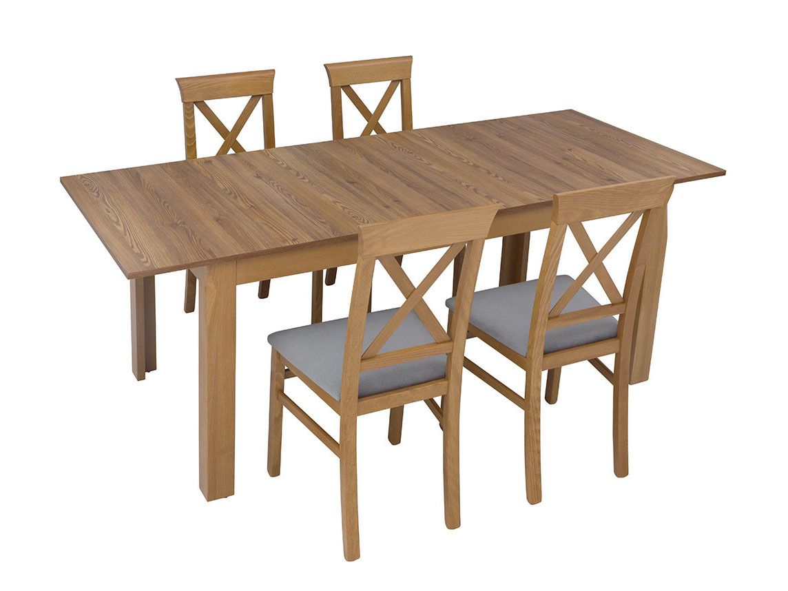 Blagovaonski stol na razvlačenje do dužine od 200 cm. Noge su od drva bukve, a gornja ploča je zaštićena folijom.