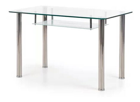 Blagovaonski stol Cristal za 6 osoba. Noge su od nehrđajućeg čelika, a ploča je od prozirnog i mliječnog stakla.