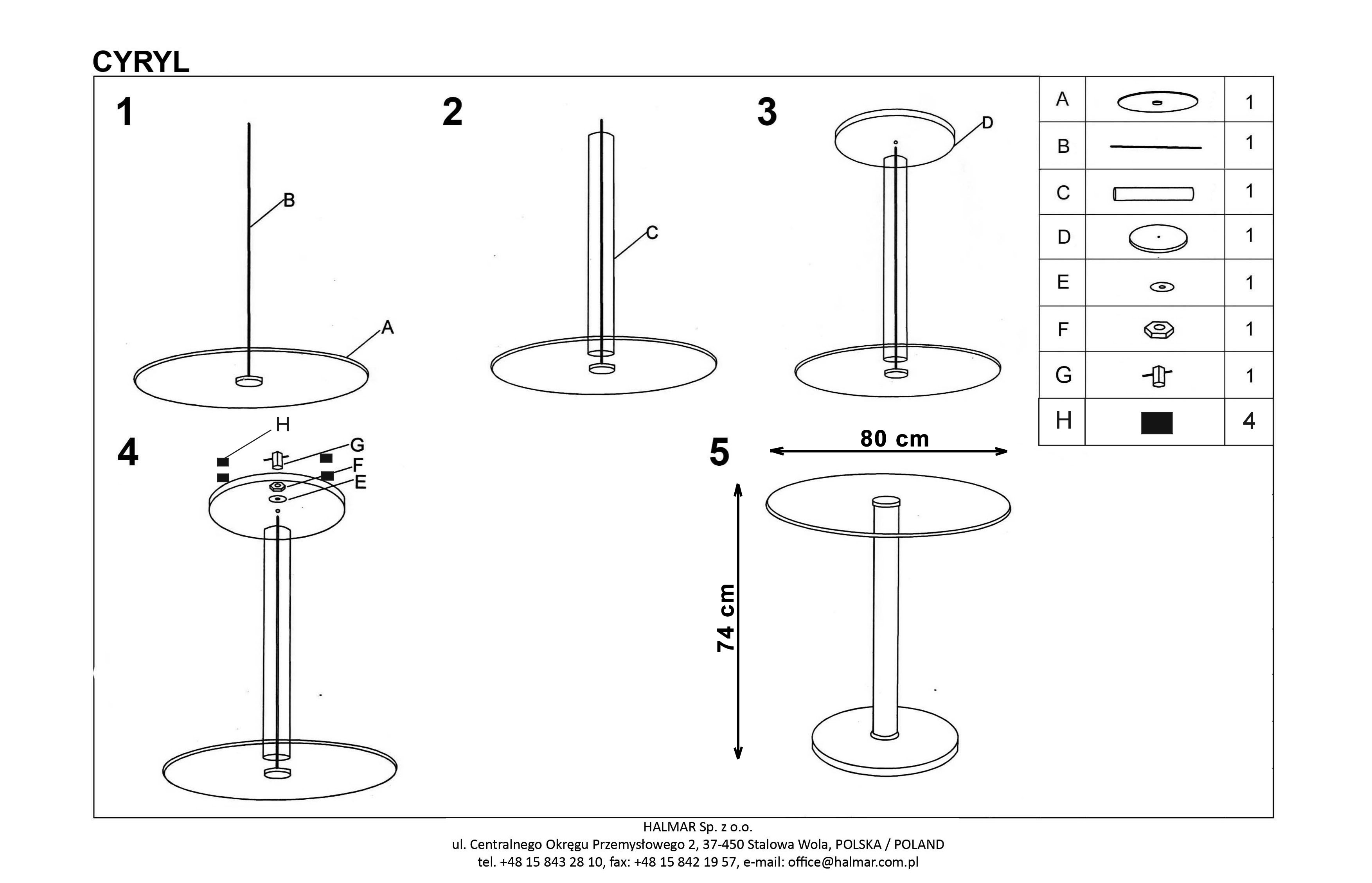Malen i simpatičan blagovaonski stol Cyryl dostupan je u boji kroma i crnoj boji. Izrađen je od čelika, pri čemu je noga stola od kaljenog stakla, od kojeg je i gornja ploča. Prikladan je za manje prostorije. Može smjestiti 4 osobe.