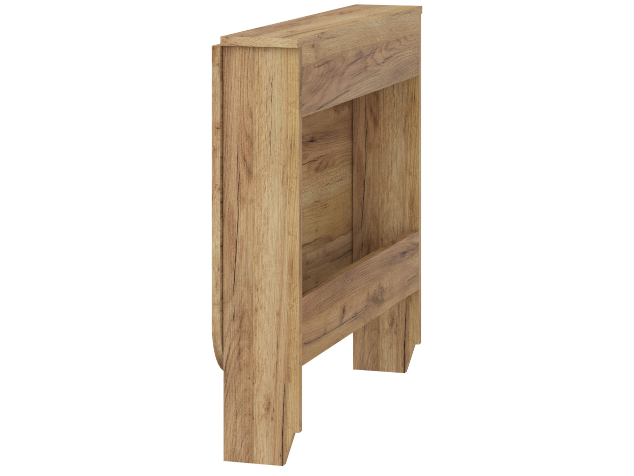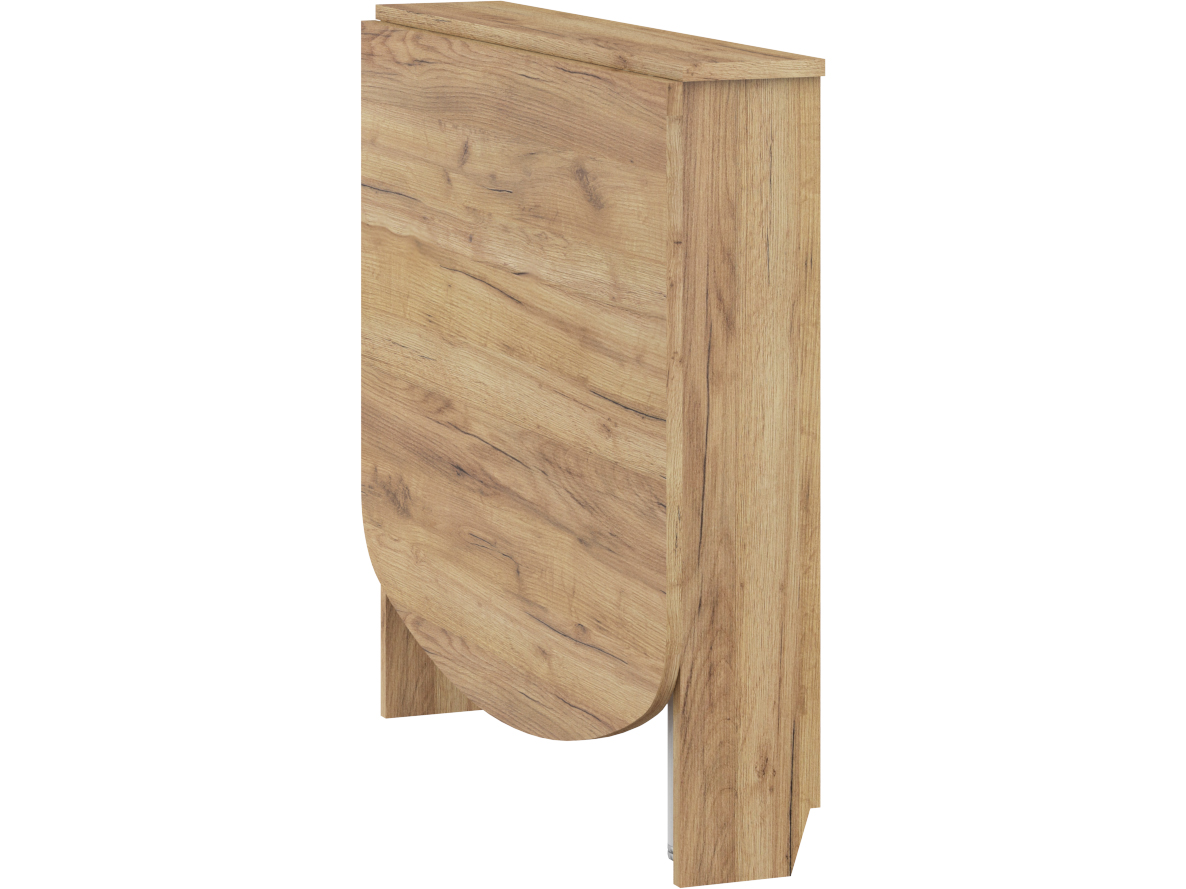 Blagovaonski stol na razvlačenje koji nakon razvlačenja ima širinu 80 cm i može smjestiti dvije osobe. Sklopljen može uštedjeti prostor jer je u tom stanju širok sam 18 cm. Postavlja se na zid radi stabilnosti.
