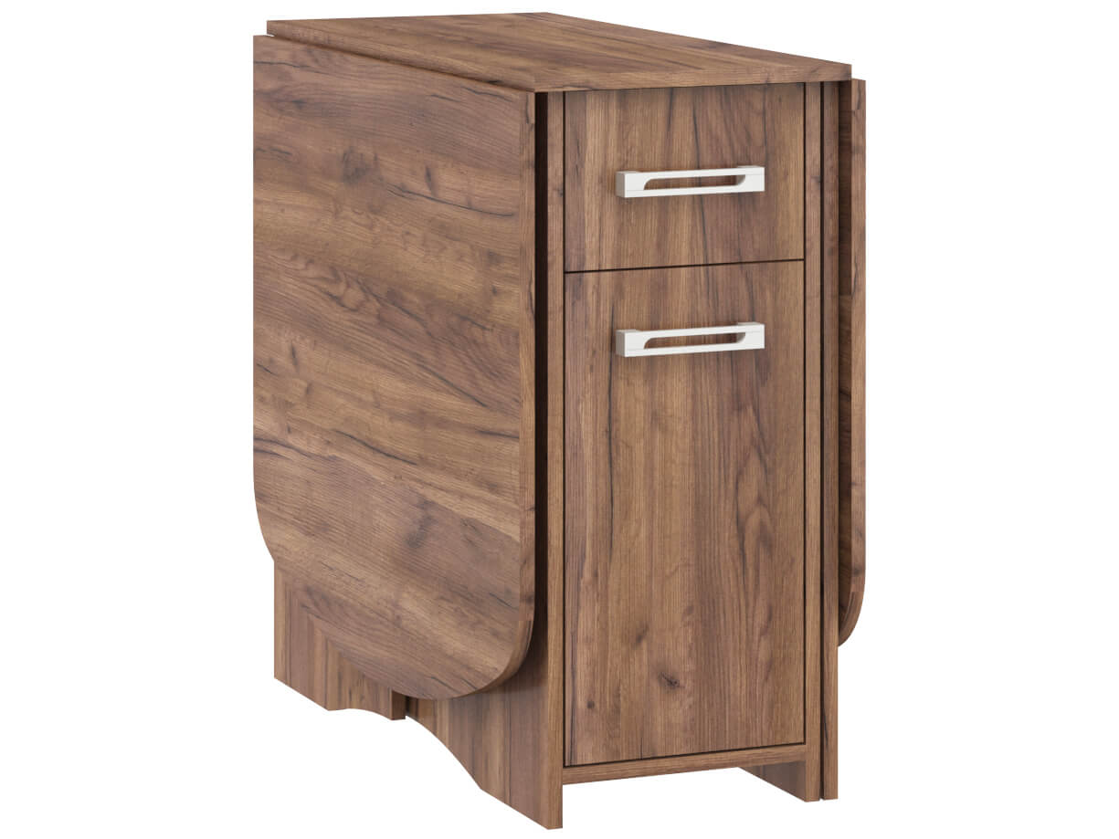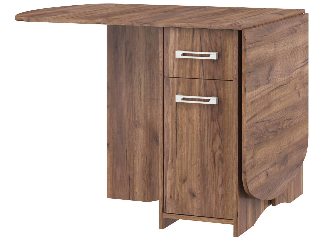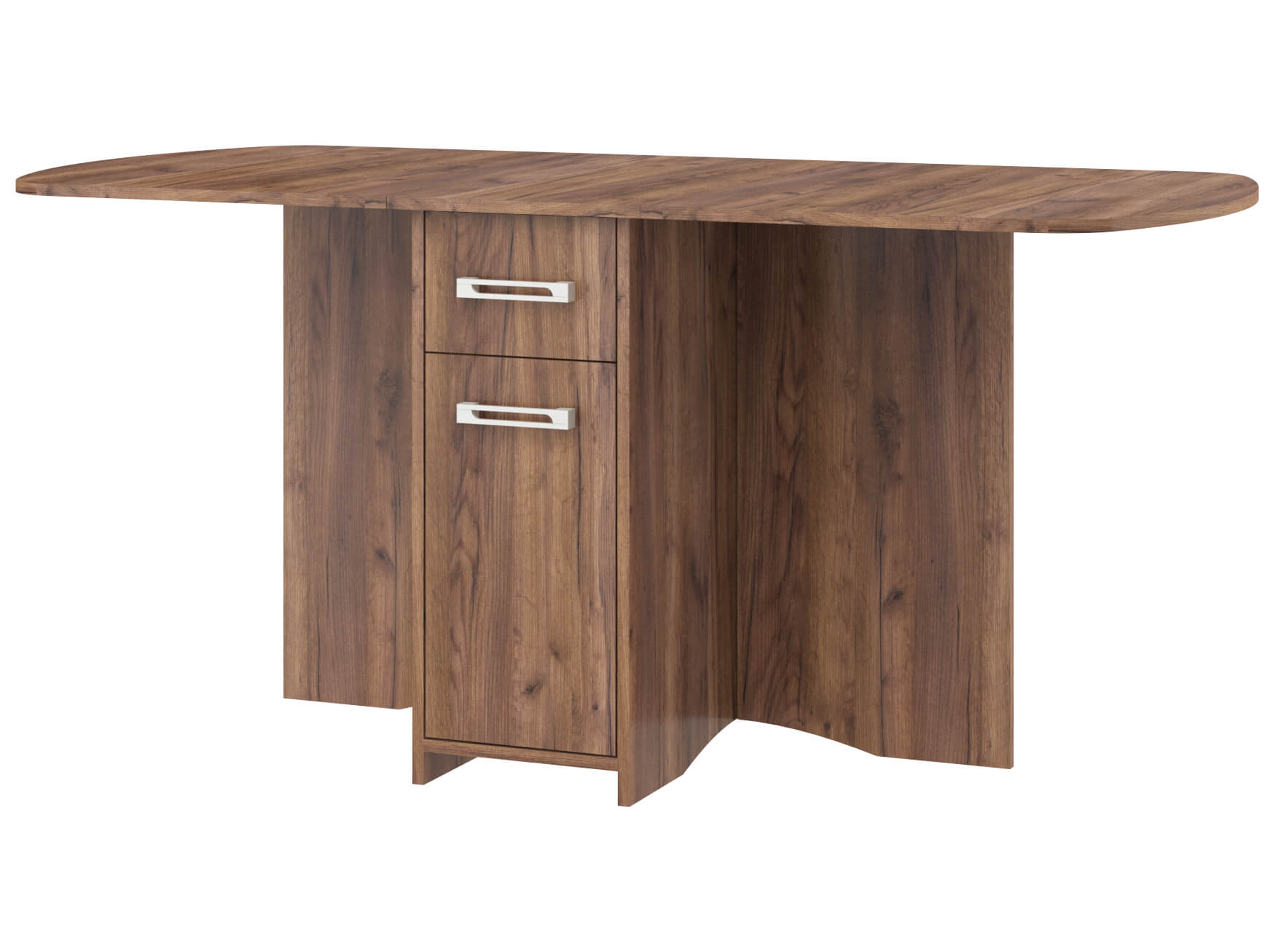 Sklopiv, tako da ne zauzima puno mjesta, po potrebi se može sklopiti u mali ili veliki stol, izgleda vrlo ugodno. Prednost su i dvije ladice i ormarić. Zadovoljstvo.