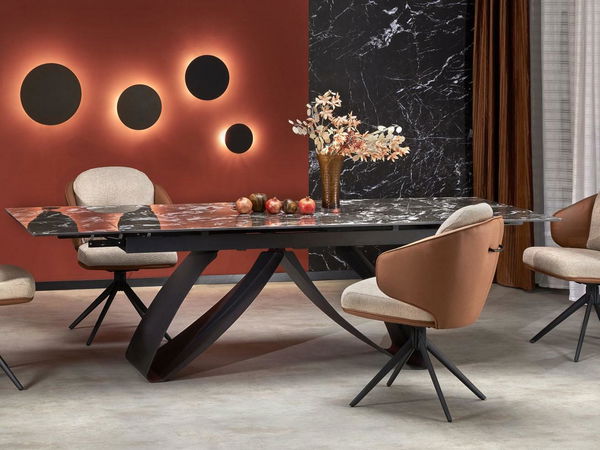Blagovaonski stol Hillary (crni mramor + crna) (za 8 i više osoba)