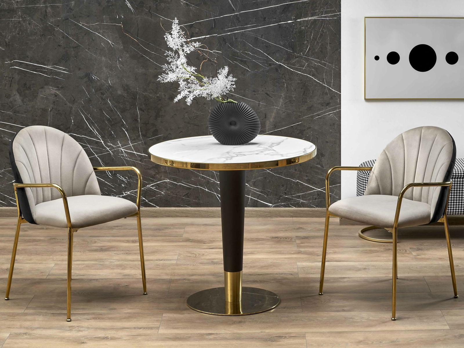 Blagovaonski stol Marva (bijeli mramor + crna + zlatna)
