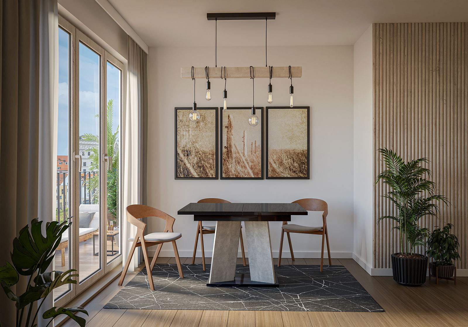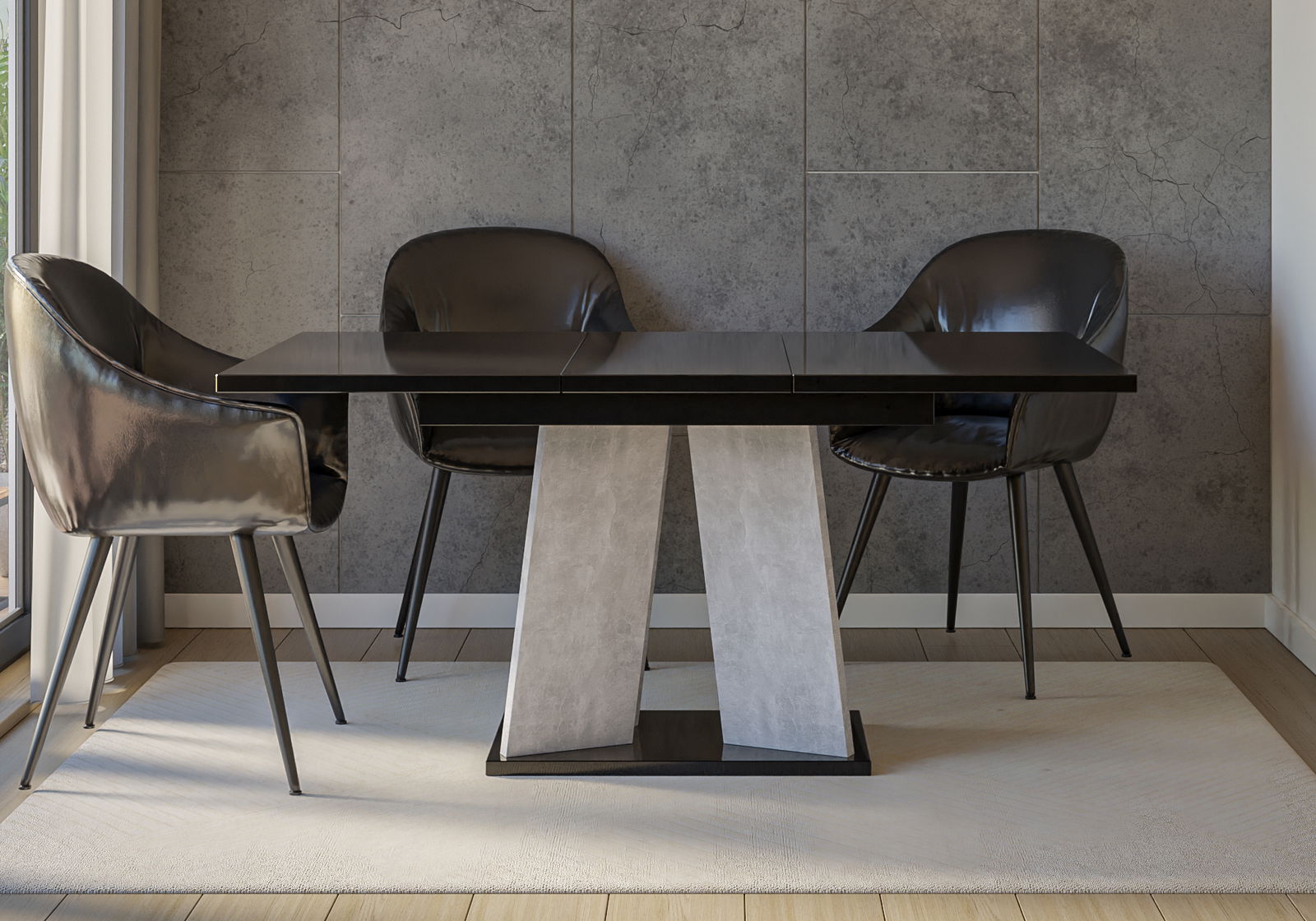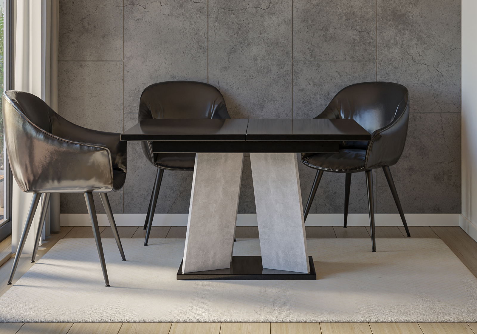 Blagovaonski stol Mulnu (crni sjaj + kamen) (za 4 do 6 osoba)