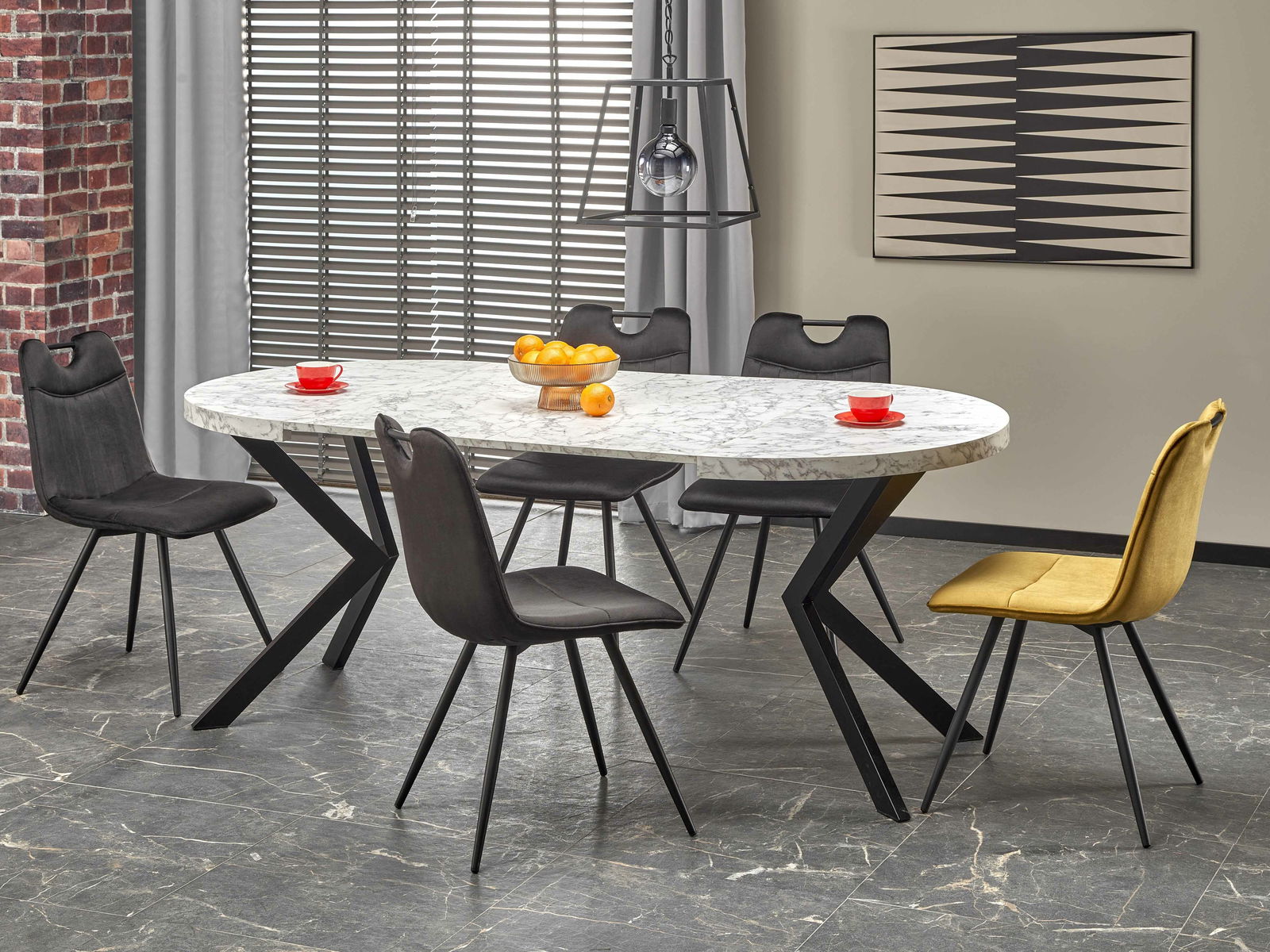 Blagovaonski stol na razvlačenje 100-250 cm Pepeera (mramor bijeli + crna) (za 6 do 8 osoba)