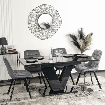 Blagovaonski stol na razvlačenje Comentado (crni sjaj) (za 4 do 6 osoba)