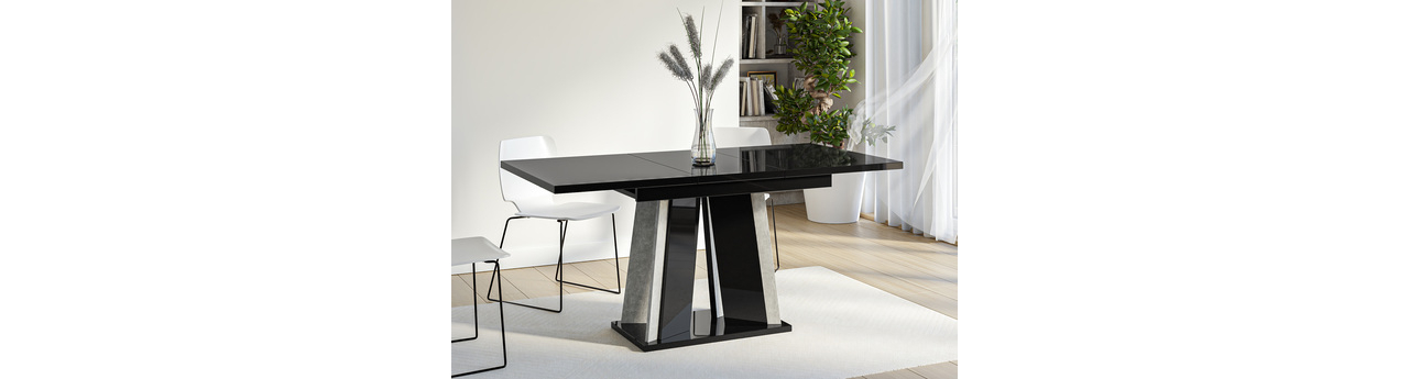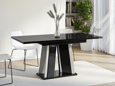Blagovaonski stol na razvlačenje Ledysa (crni mramor royal + crni sjaj) (za 2 do 6 osoba)