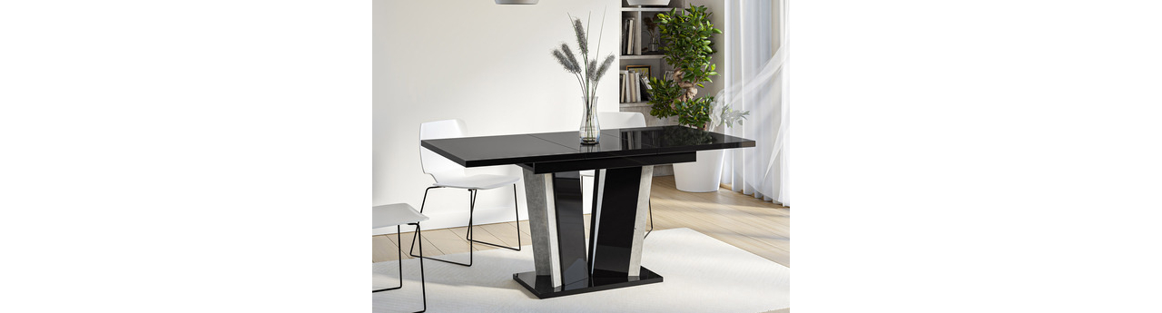 Blagovaonski stol na razvlačenje Ledysa II (bijeli sjaj + beton) (za 2 do 6 osoba)
