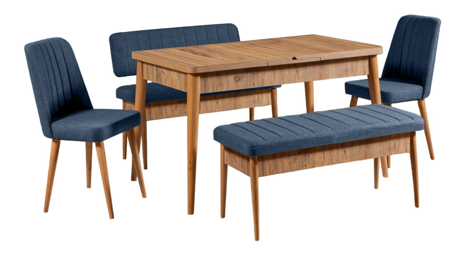 Blagovaonski stol na razvlačenje sa 2 stolice i 2 klupe Vlasta (orah + tamnoplava)