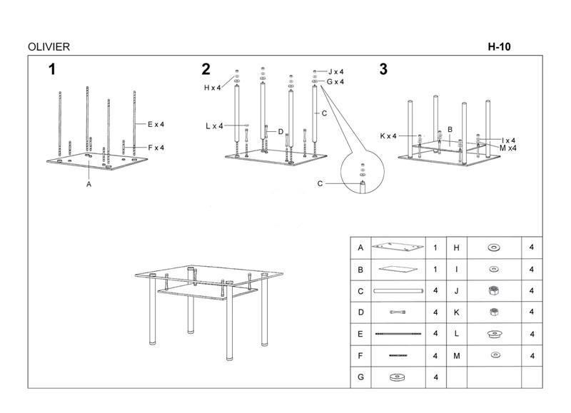 Stol Oliver modernog dizajna s jednostavnim konstrukcijskim elementima. Stol ima dvije razine: gornja je od kaljenog stakla, a donja je od kaljenog mliječnog stakla. Stol je izrađen od nehrđajućeg čelika.