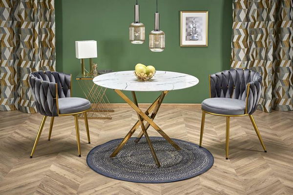 Blagovaonski stol Raunds (bijeli mramor + zlatna)