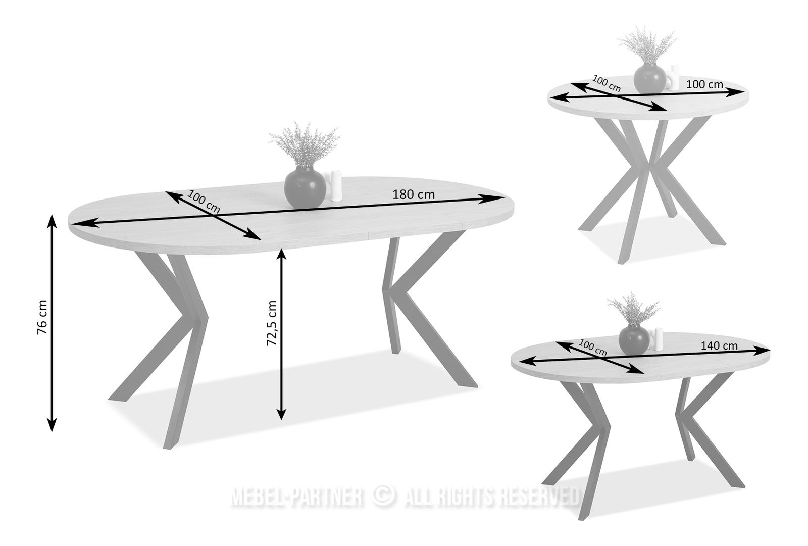 baza - 4 noge, za 6 osoba, na razvlačenje, ovalni vrh