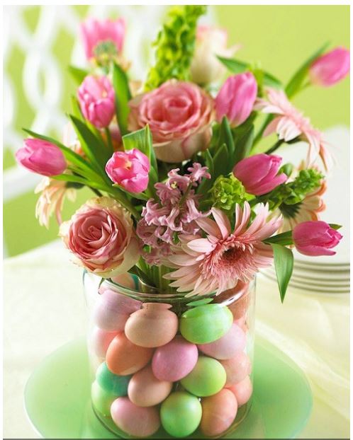 Najbolje je dočekati proljeće sa živim cvijećem. Izaberite šareno cvijeće poput tulipana, zumbula, krizantema ili narcisa, neka vam nebo bude granica. Za uskrsnu atmosferu možete aranžirati jaja tako da pola jajeta (može biti i obojano) napunite vodom i u njega stavite cvijeće. Cvijeće možete omotati listom. Dovoljno je sve aranžirati i u običnoj kutiji za jaja koju ste prije toga obojili. Ne zaboravite u ljuske dolijevati vodu!