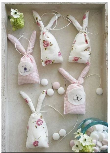 Iskoristite šarenu tkaninu, komadić bijelog pusta za njuškicu, ljepilo, jaču pamučnu tkaninu ili konopac za sušeno bilje kao ispunu. Možete koristiti lavandu, matičnjak, timijan i sl. Prema slici otrgnite 2 x jednostavan oblik zečića (pravokutnik s ušima) i krug od pusti. Na krug nacrtajte njuškicu zečića. Tijelo prišijte i zalijepite oblik njuškice. Ispunite sušenim biljem i zavežite konopcem.