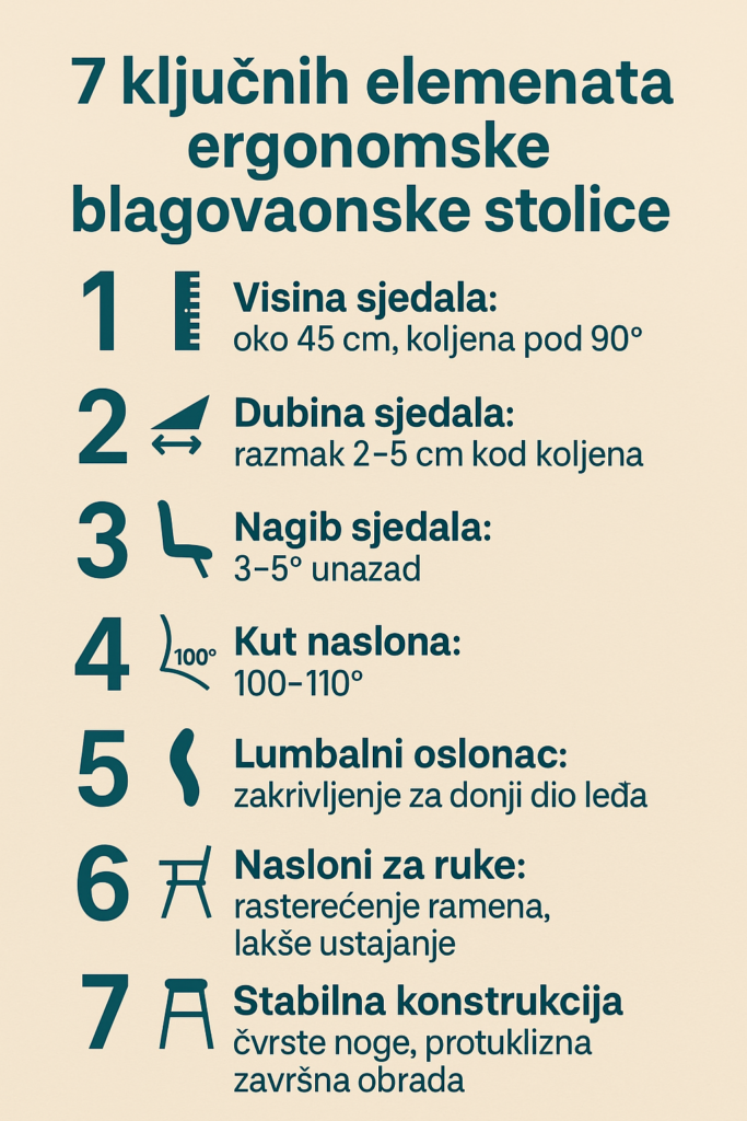 Evo glavnih ergonomskih principa primijenjenih na dizajn blagovaonskih stolica: