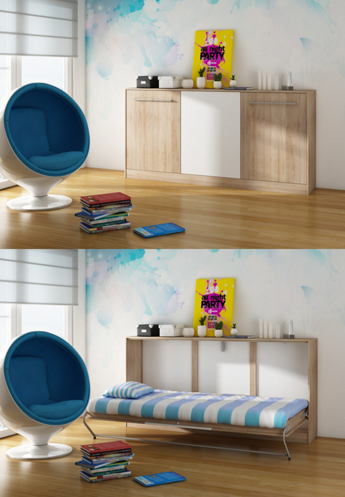 Ako baš trebate smjestiti krevet pune veličine u sobu, a ne želite svaki dan spavati na kauču na razvlačenje, postoji i rješenje za sklopivi krevet. Krevet koji se tijekom dana diskretno skriva u ormaru. Na taj način može uštedjeti potreban životni prostor. Kada ujutro složite cijeli krevet u ormar, dobivate dodatni prostor.