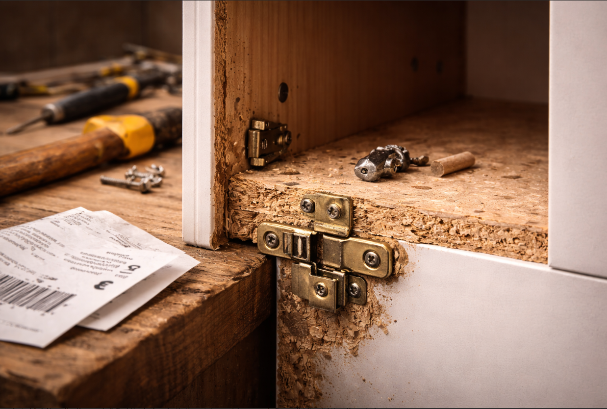Iskustvo iz pitanja kupaca (bez zastrašivanja): ljudi nas često pitaju zašto njihova komoda nakon nekog vremena „nije više tako precizna kao na početku“. U mnogim slučajevima ne radi se o pogrešci u montaži, nego o kombinaciji slabijih okova i materijala koji se tijekom korištenja pomiče.