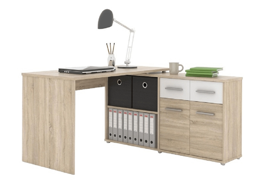 Ako posjedujete klasično stolno računalo, morate imati dovoljno prostora ne samo za teško PC kućište i monitor, već i za tipkovnicu i miša. Trebat će vam dodatni prostor ako pored računala želite postaviti uređaje poput kopirnog stroja, skenera ili telefona. Vaš kućni ured tako može narasti do neočekivano velikih dimenzija. Prostrani kutni PC stol s prostorom za tipkovnicu i nekoliko polica pomoći će riješiti ovaj problem. Zahvaljujući njegovom obliku imat ćete sve što Vam je potrebno nadohvat ruke.