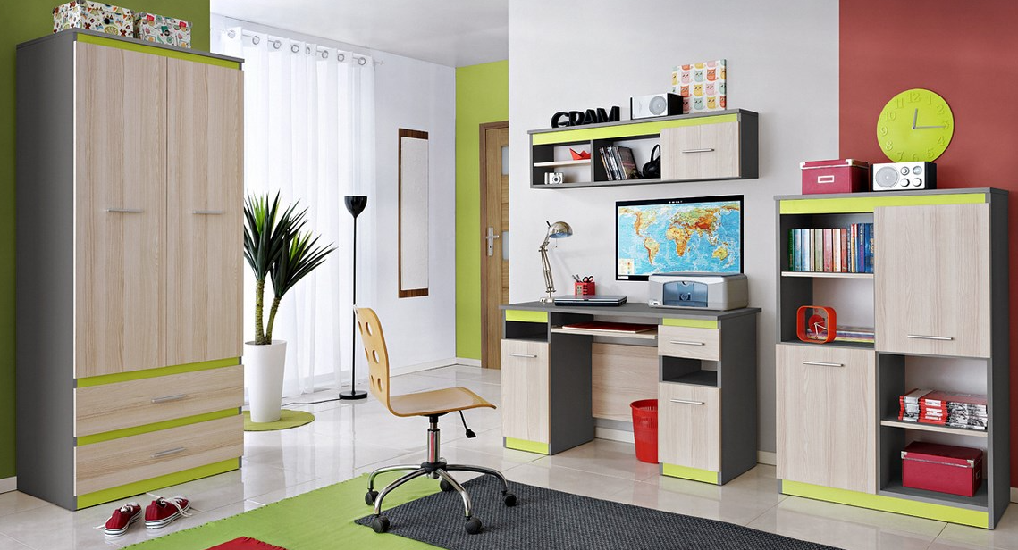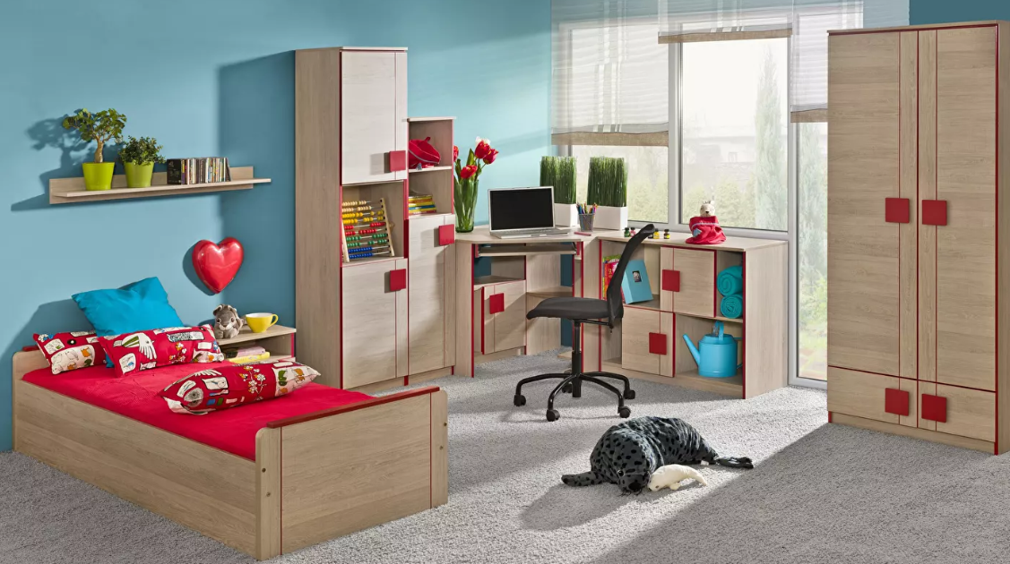 Dječja soba se sastoji od kreveta, police, noćnog stolića, regala, kutnog stolića, ormarića, ormara. Ovu sobu će još upotpuniti prikladna stolica