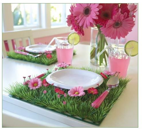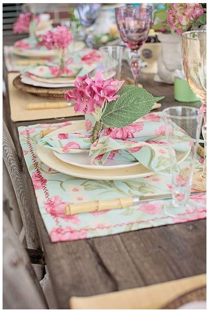 Iskoristite šarenu traku ili nekoliko šarenih vrpci koje ćete smjestiti usred stola. Uz to će vam biti dovoljna lijepa vaza sa šarenim cvijećem i jednostavan pribor. Ili pod tanjure možete postaviti šarene ubruse.