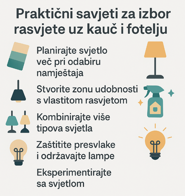 - Praktični savjeti za izbor rasvjete uz kauč i fotelju