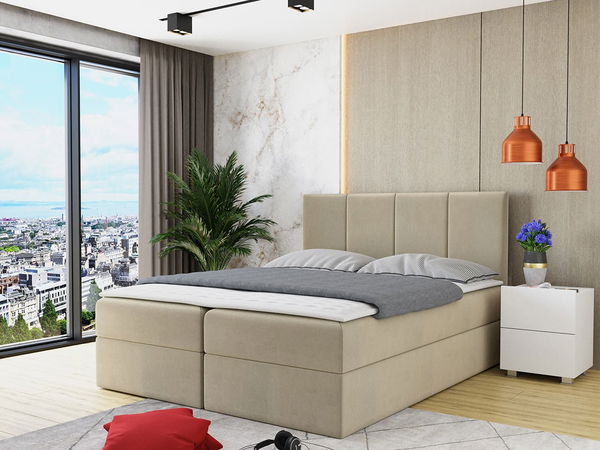 Bračni krevet 140 cm Gunzy (bež) (s podnicom i madracem) (s prostorom za odlaganje)