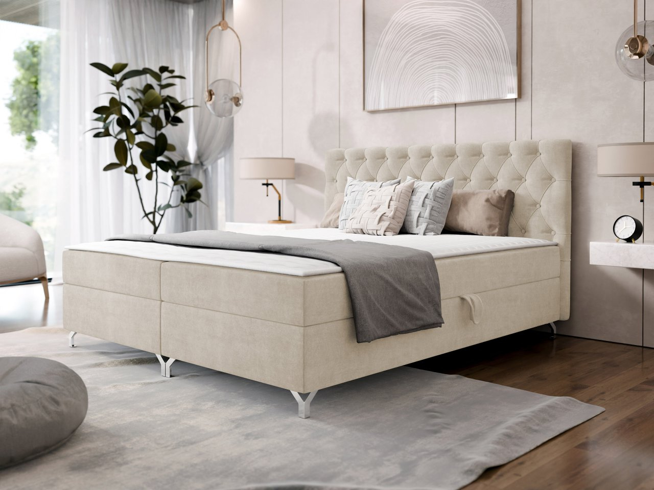 Bračni krevet 140 cm Jenaks 2 (bež) (s podnicom i madracem) (s prostorom za odlaganje)