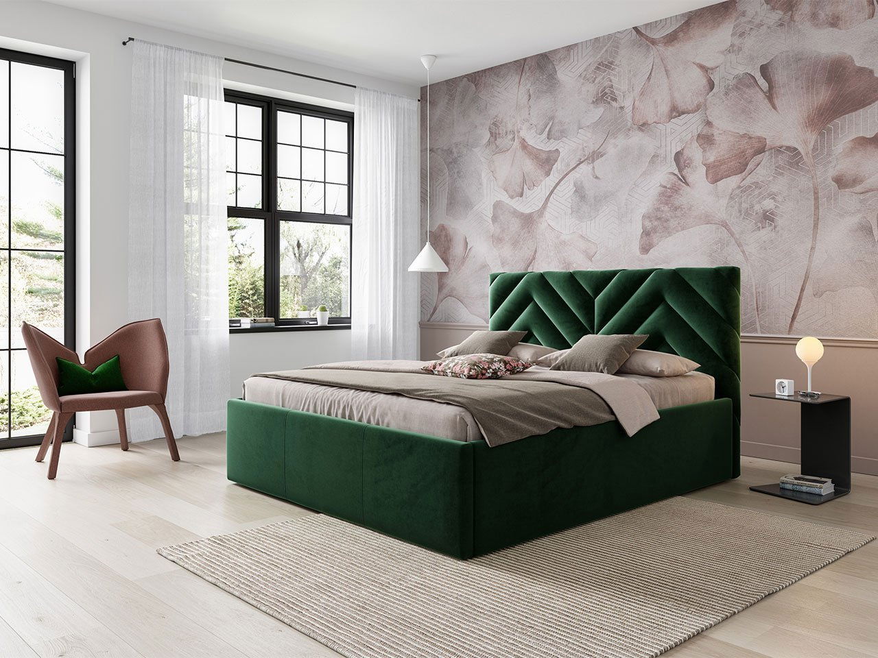 Bračni krevet 140 cm Mengalora (zelena) (s podnicom) (s prostorom za odlaganje)