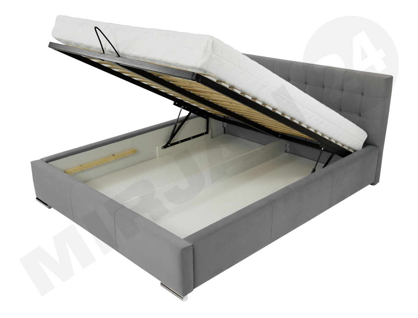 drveni okvir + ivericaprostor za odlaganje, potpuno automatsko podizanjeotvaranje prostora za odlaganje prema goreponiklane nogice dimenzija 20 cm x 4 cmmetalna podnica ispod madraca povezana s prostorom za odlaganjevisina podnice oko 55 mm
