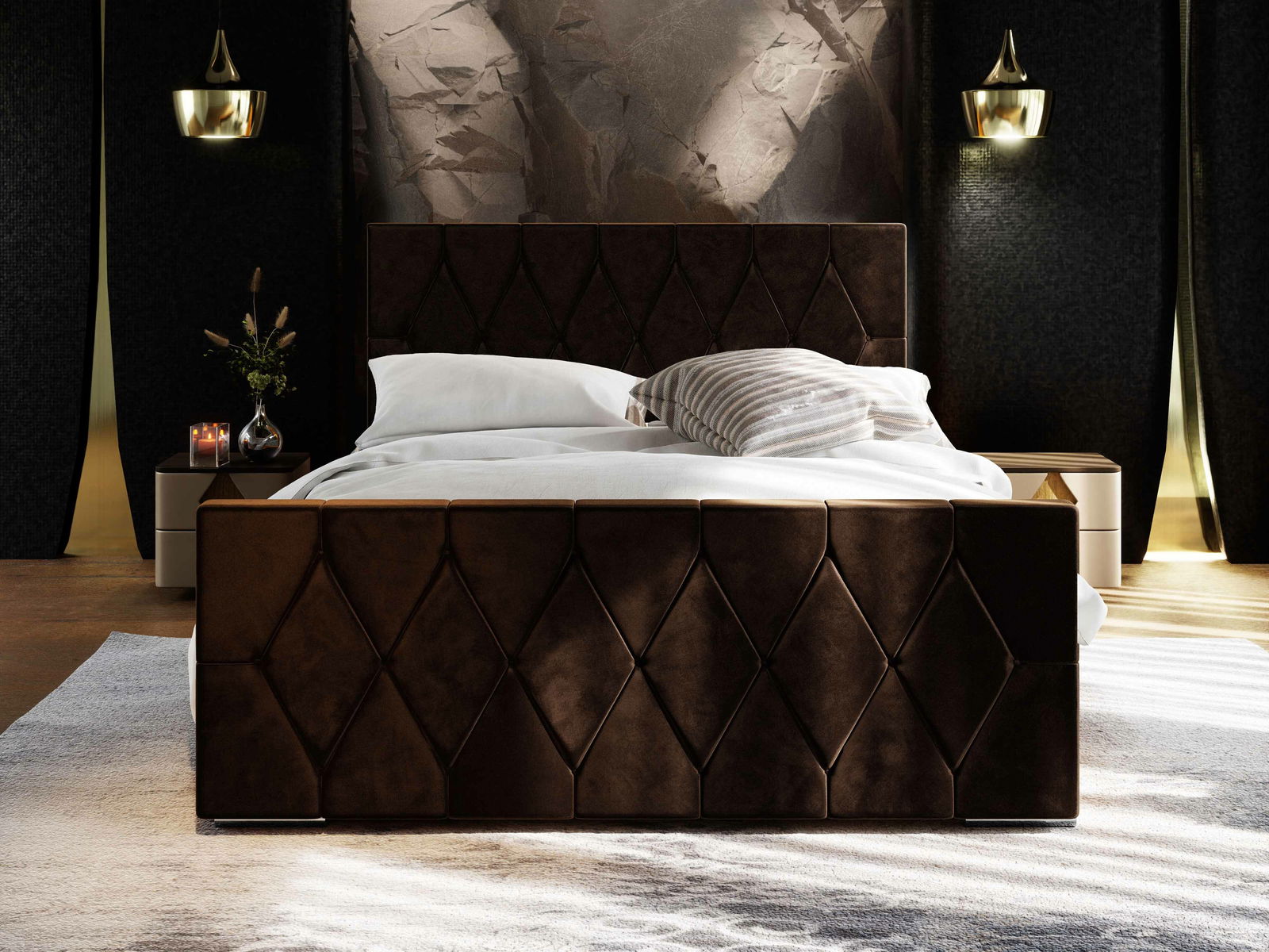 Bračni krevet 160 cm Alex (tamnosmeđa) (s podnicom i prostorom za odlaganje)