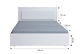 Bračni krevet isporučuje se bez madraca i podnice. Uzglavlje ima LED rasvjetu. Bijele boje s visokim sjajem.