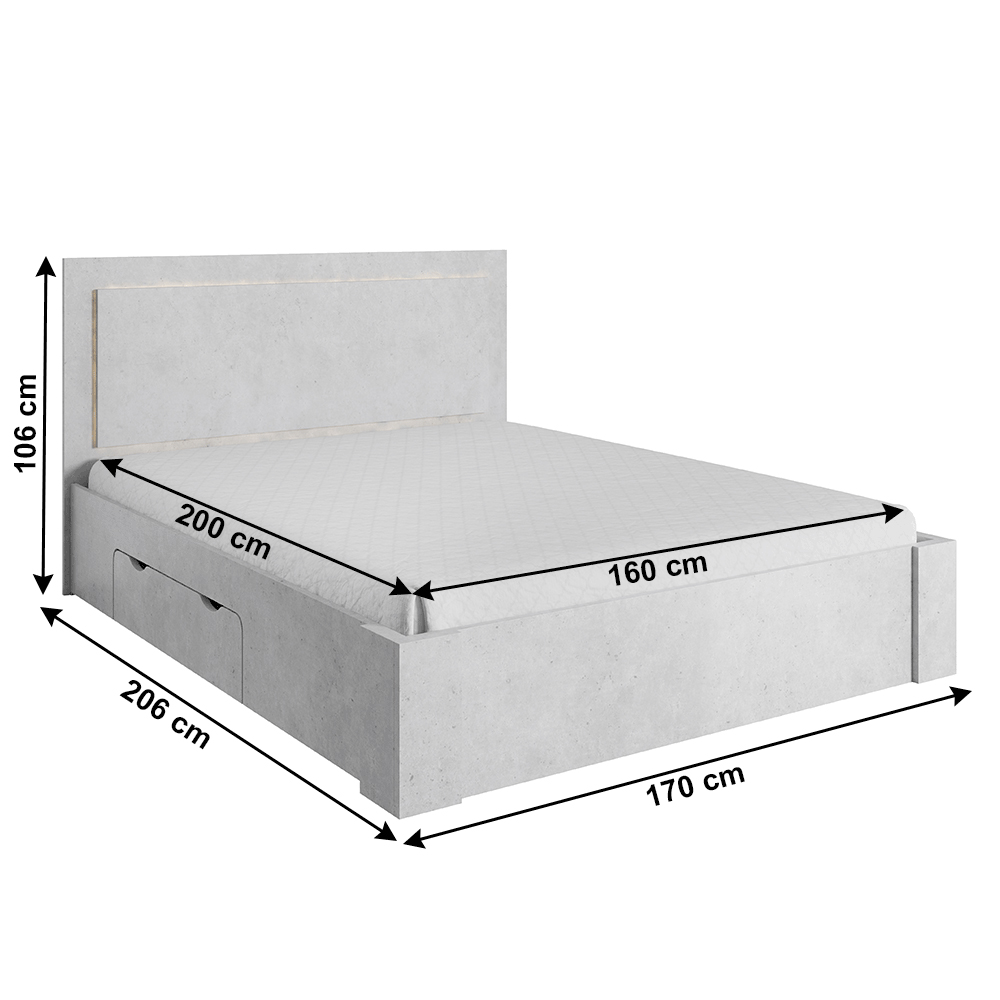 Bračni krevet 160 cm Atalen (sivi beton) (s prostorom za odlaganje)