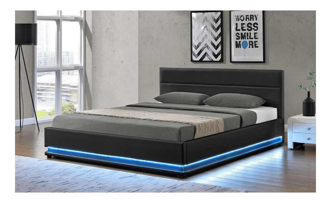 Bračni krevet s ugrađenom bijelom LED rasvjetom. U cijenu je uključena i podnica od lamela. Cijeli krevet je presvučen eko-kožom koja se lako održava. Krevet se isporučuje u dijelovima.