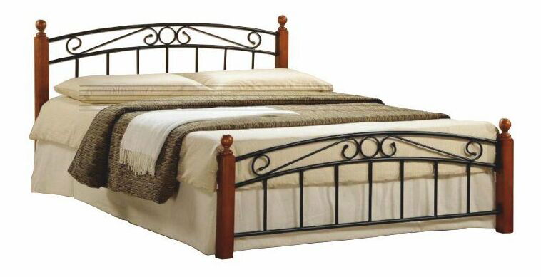 Luksuzni metalni krevet s ornamentima na metalnoj konstrukciji. Crni metal dopunjuju drvene noge s ukrasnim krugovima u boji trešnje. Površina za spavanje je 160 x 200 cm. Krevet se isporučuje s kvalitetnom podnicom. Podnica je smještena 31 cm od poda. Preporučujemo kupiti madrac u komadu za cijelu širinu kreveta.